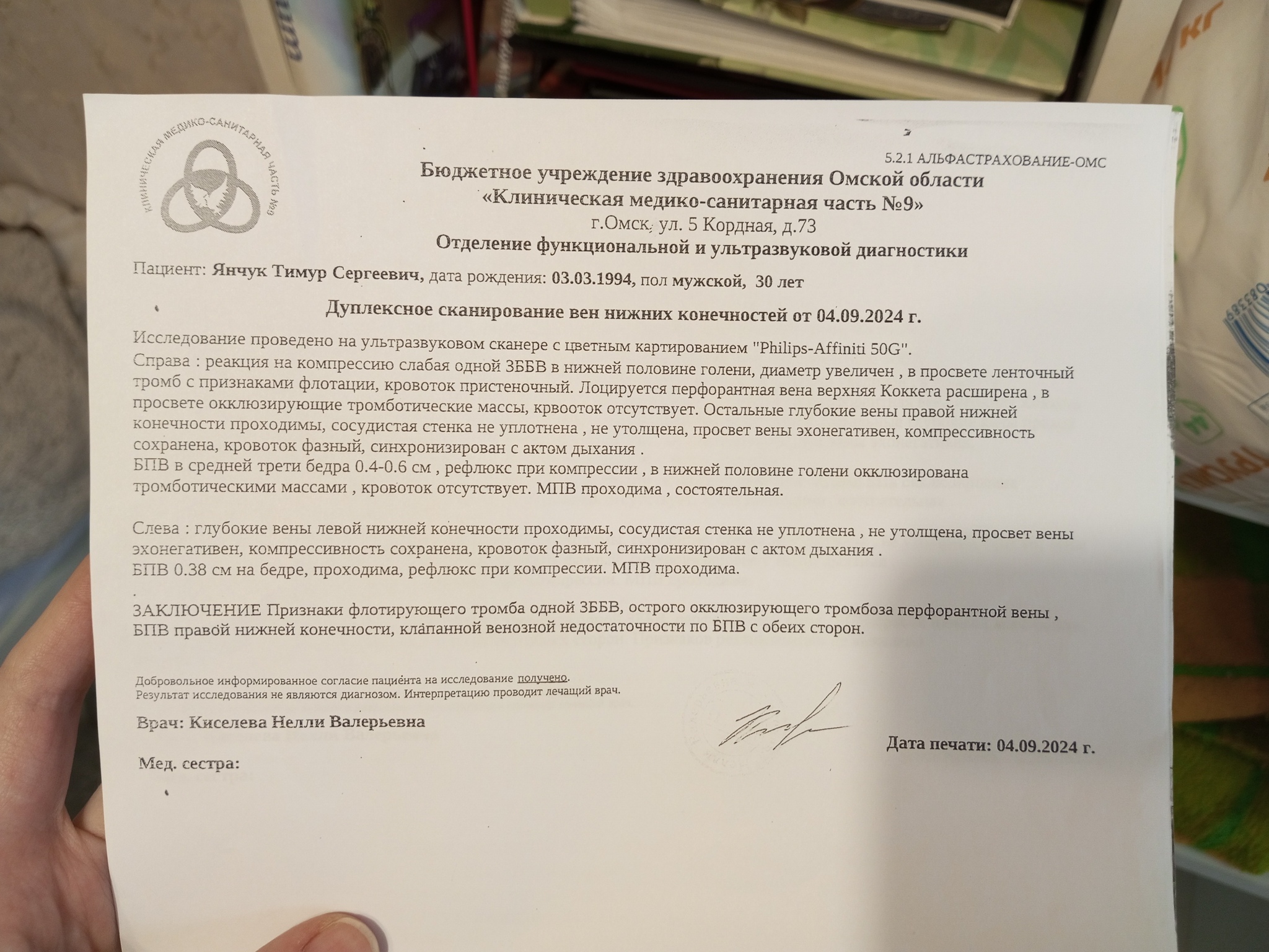 О, у меня муж в сентябре 10 дней лежал в больничке с флотирующим тромбом. Просто вечером на ноге появилось покраснение, как будто укус. Спрашиваю не ударялся не царапался? Нет говорит. На ощупь горячее место, как будто чуток отёк ниже. Я говорю давай-ка скорую, очень мне не нравится. Отнекивался, говорит да ерунда какая-то. За пару часов его закошмарила - согласился. Приехал фельдшер, парень молодец, не отмахнулся, говорит да, похоже, лучше проверить. Забрали его к сосудистым хирургам, те УЗИ сделали и говорят да, флотирующий тромб, надеваем чулки, лежачее положение не вставать даже под дулом пистолета. Через 10 дней тромб прирос к стенке, выпустили домой с пожизненной ноской чулков и ксарелто. А выглядело всё реально как просто покраснение 1см×1см