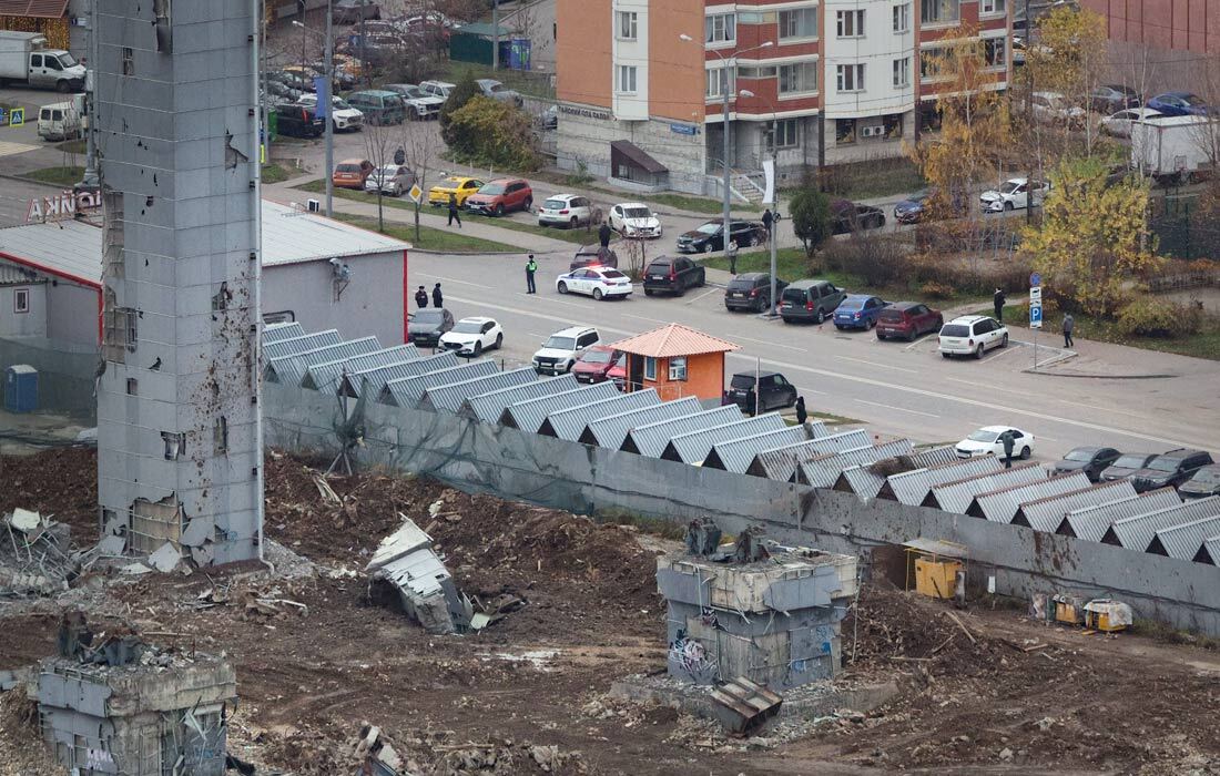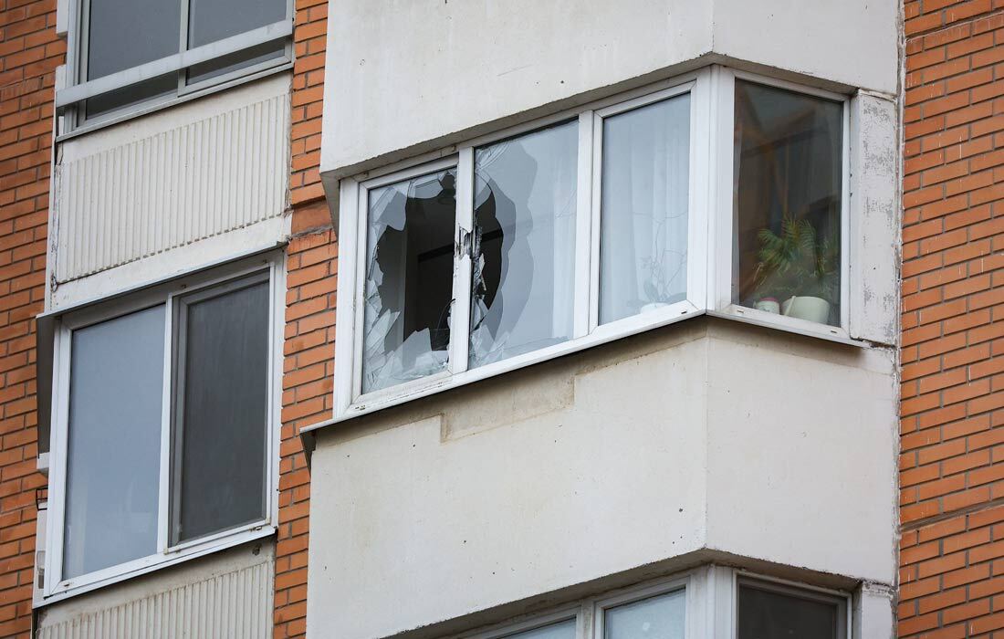 Жилые дома около комплекса "Снежком" получили повреждения из-за падения элементов конструкций, сообщили оперативные службы.