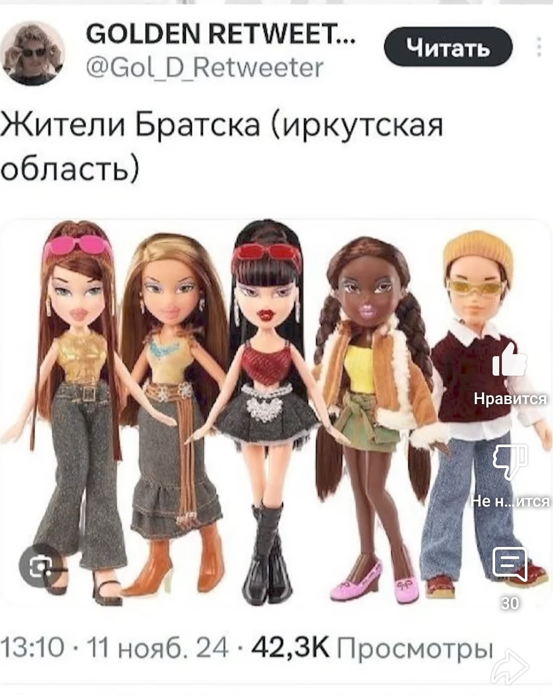 1 HeRcbITb 10 месяцев назад Ответ на пост «Ночной Братск не для слабаков»2 Картинка с текстом Скриншот Из сети Юмор Кукла Ответ на пост Ещё 0