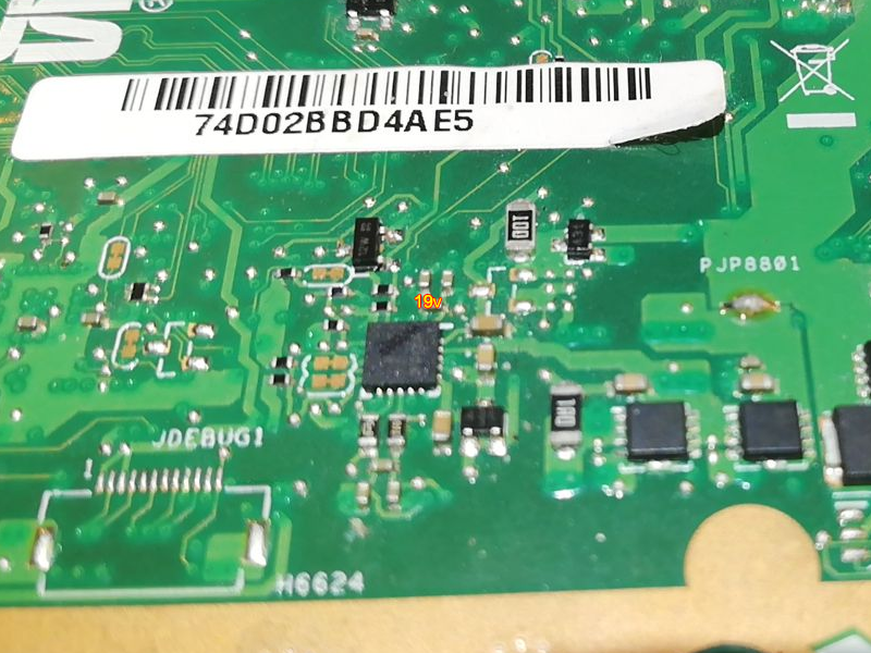 Нашёл boardview, нашёл где входные... чипы? их ещё "мосфетами" называют, но у транзистора обычно три-четыре ноги, а тут по 8? На первом из них (маркировка a5 vna 1p1903) на входных ногах 19в, на выходных 0.73 вольта.