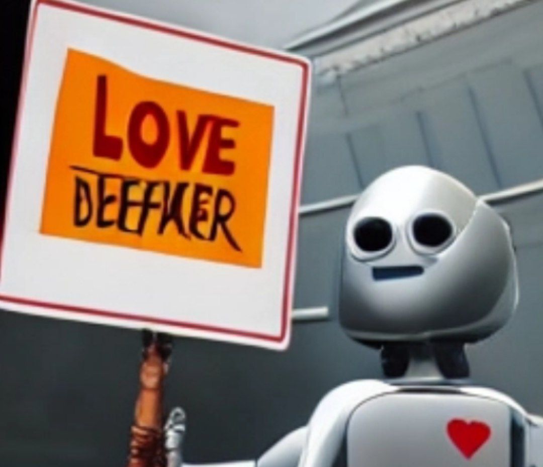 Запрос : a robot holding a sign that reads: "Love Pikabu"