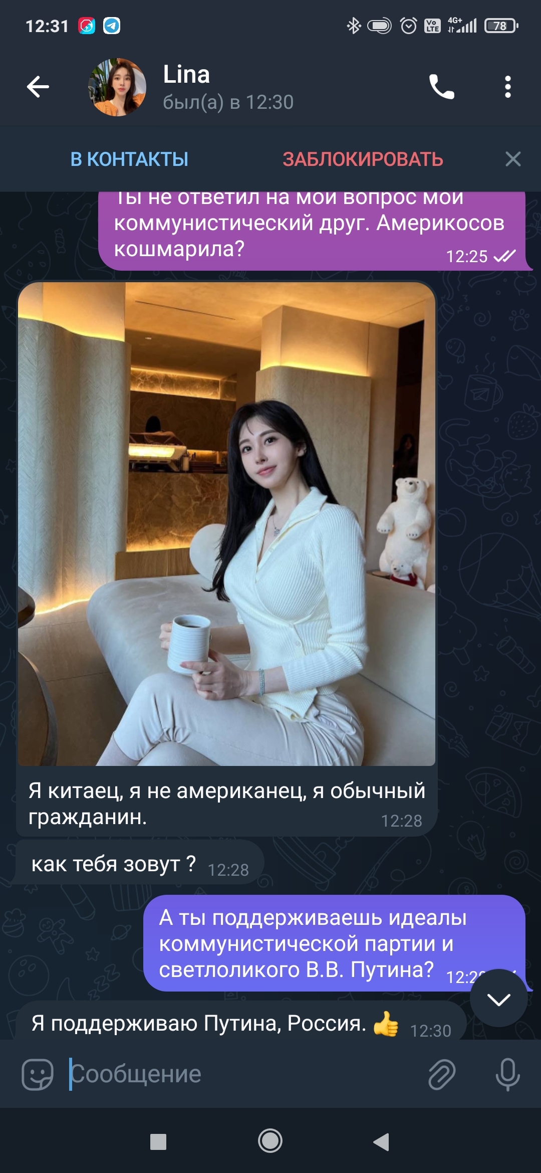 1 izya0o Ответ на пост «Новый разводняк?» 3 месяца назад Мне недавно написали в телеге, номер телефона зарегистрирован во Вьетнаме.Чота подозрительно. Через 30 секунд он (она?) меня заблочил почему то.Возможно я упустил возможность найти настоящего друга( [моё] Волна постов Странности Женщины Мошенничество Критическое мышление Логика Интернет-мошенники Ложь Справедливость Telegram Манипуляция Негатив Мат Знакомства Скриншот Переписка Длиннопост 4 Ещё 0