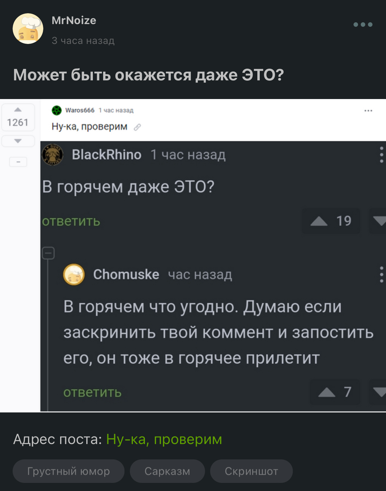 iMaxFreeman Баяны Ответ на пост «Ну-ка, проверим»6 2 года назад Если окажется это, то я требую новый бунт 🥲 Скриншот Пикабу Комментарии на Пикабу Ответ на пост Повтор Ещё 0