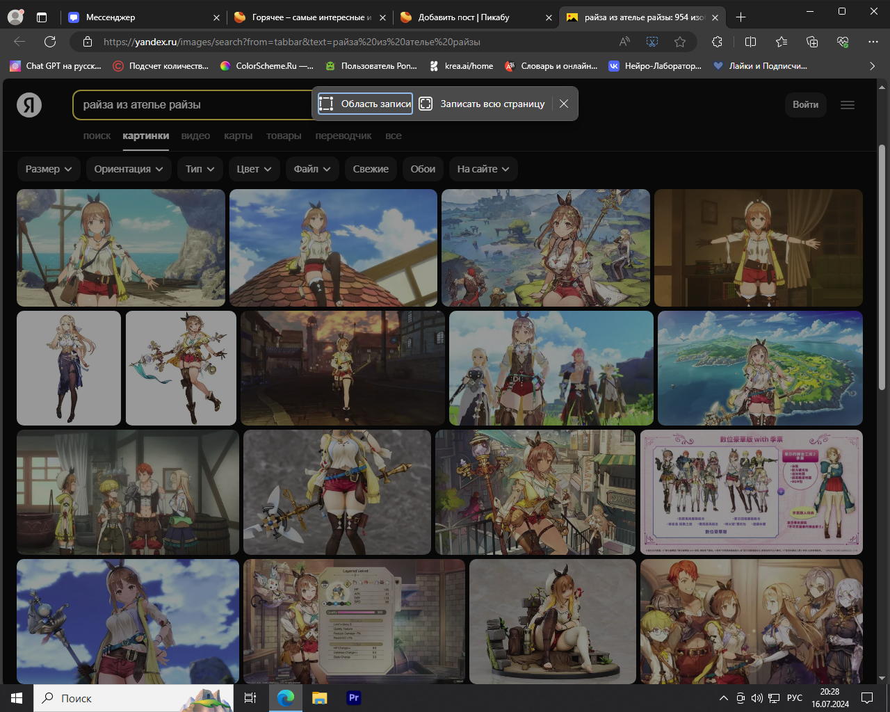 В общем, если нужна какая-то картинка, то надо нажать ctrl+shift+S -- это сочетание клавиш вызывает "ножницы", которыми можно вырезать понравившуюся картинку.