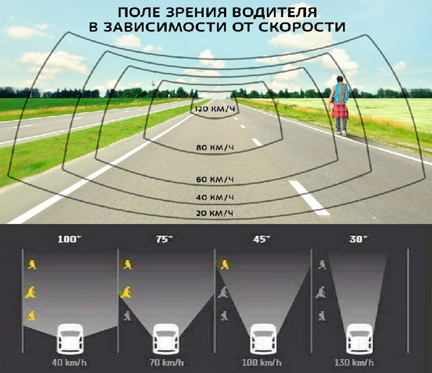 Ну и оцените схему поля зрения водителя. В зависимости от скорости.