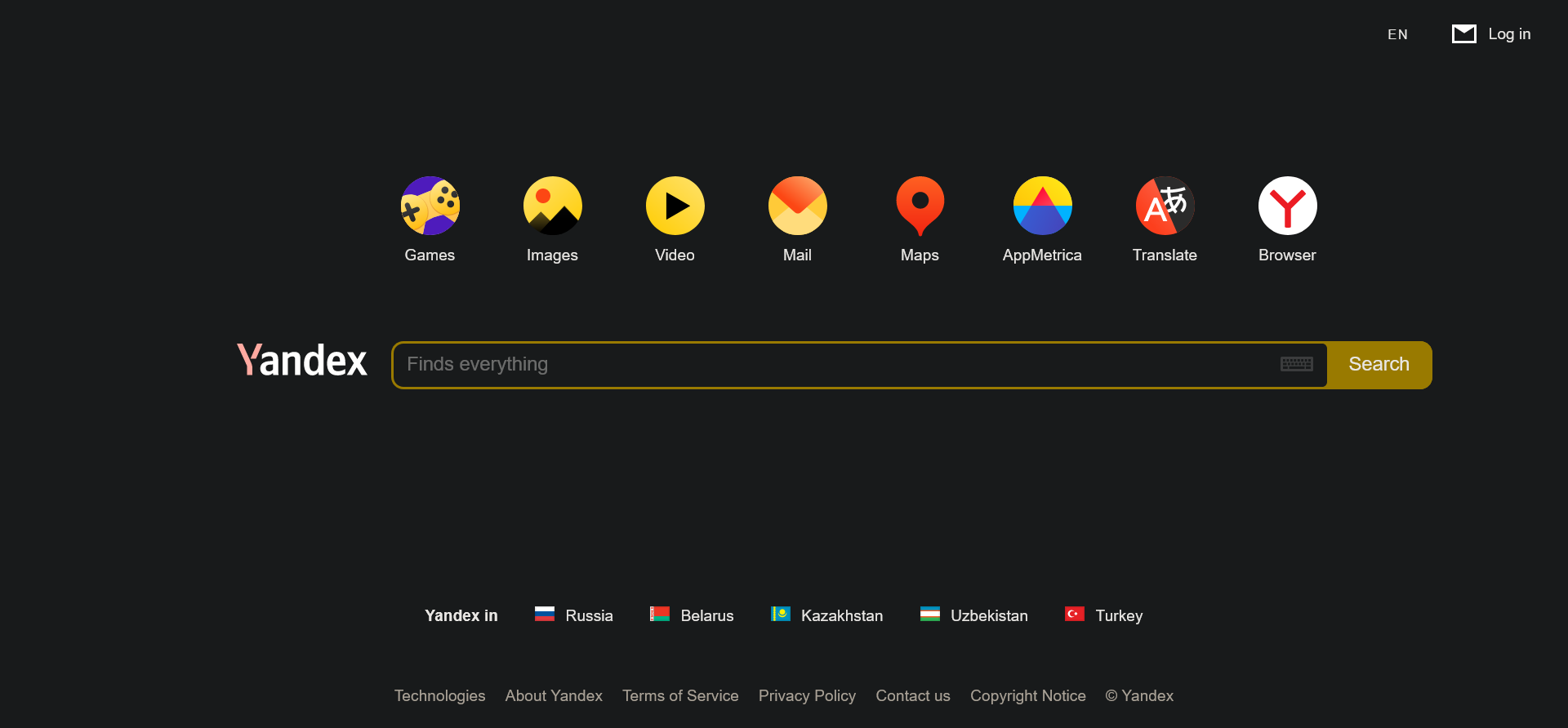 Вполне себе привычный интерфейс и без новостей. Не знаю, отличаются ли в них результаты поиска для России по сравнению с yandex.ru, но многие кнопки на месте.