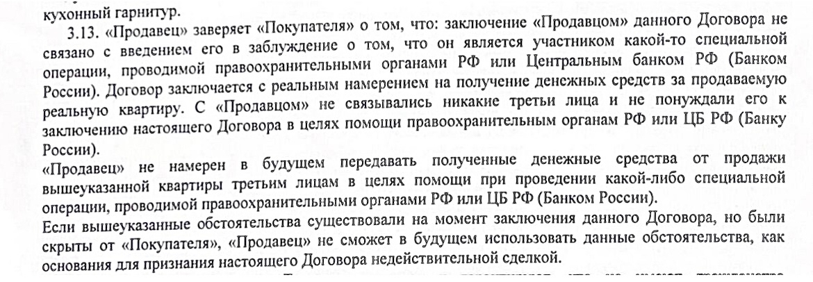 А если в договоре прописать/взять расписку/сделать запись на камеру, что продавец не участвует в какой-либо специальной операции ФСБ/ЦРУ/МИ6? Тогда же сделку не развернут?