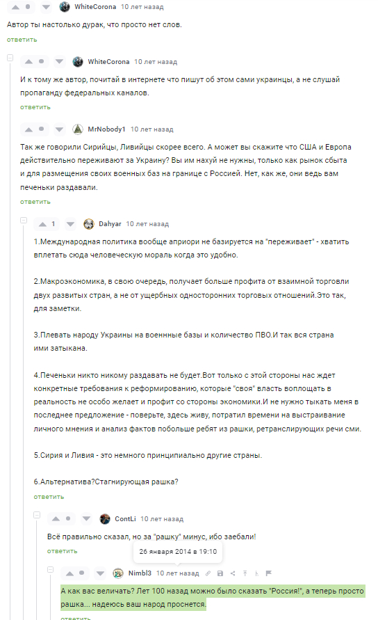 А сколько "братской любви" в словах и всё это ещё до марта 2014, хотя на пикабу любят утверждать обратное.