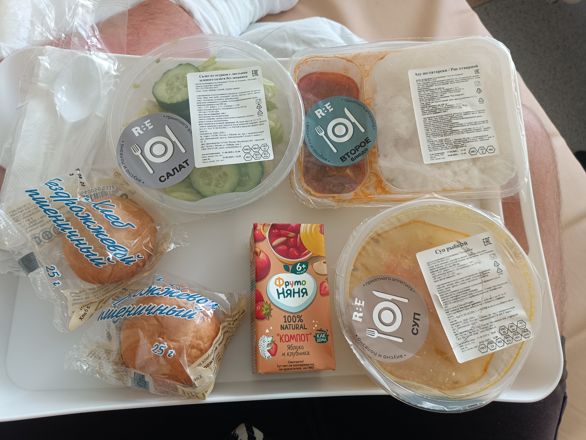 А для меня, надо сказать, это всё просто вау, так как я последний раз лежал в больнице больше одной ночи лет в 10, в инфекционке в подмосковье (после чебурека ашановского, травма детства бл) и там было как в нашей раше, в плохом смысле тех мед. сюжетов. И да, питание! Это нечто для больницы, я сначала даже не догадался, что это для больных, ждал манку на воде. А тут лосось, греческий салат, азу из говядины нормальное...