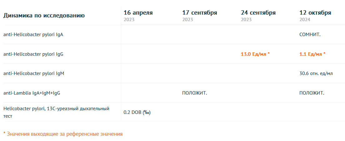 Из того, что не дожали - хеликобактер и лямблиоз. Здесь ситуация сложнее, будем разбираться дальше.