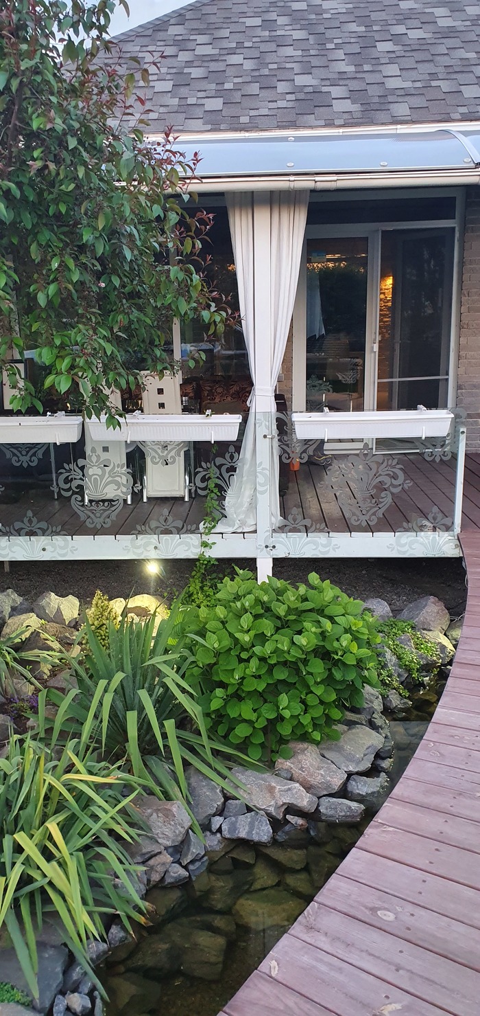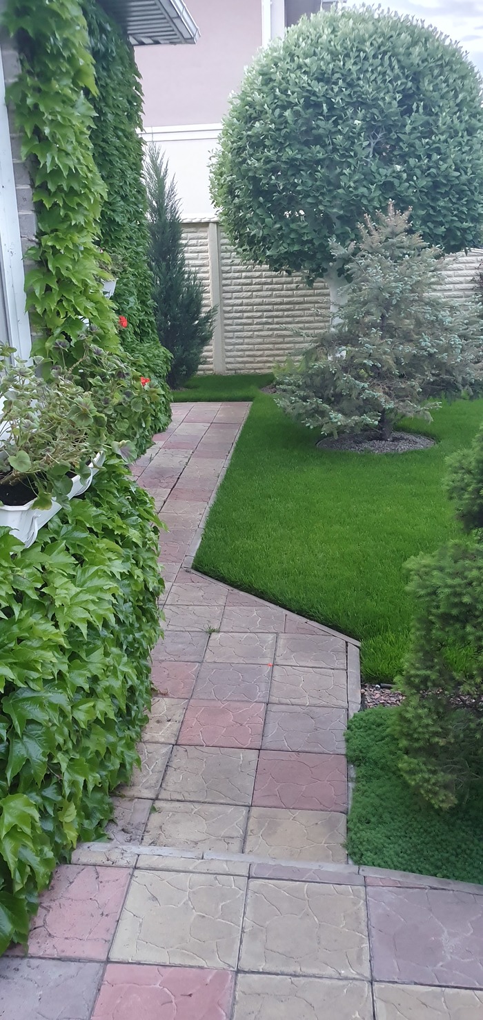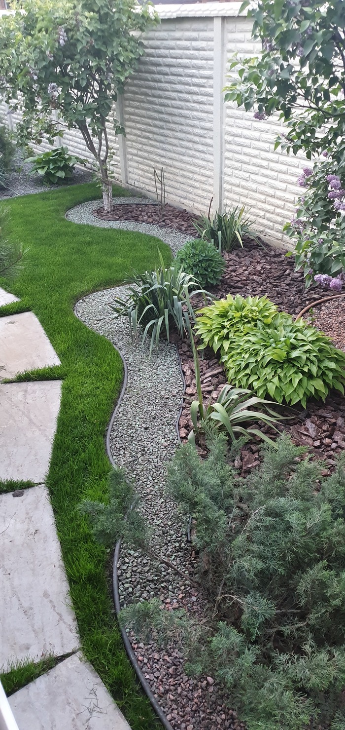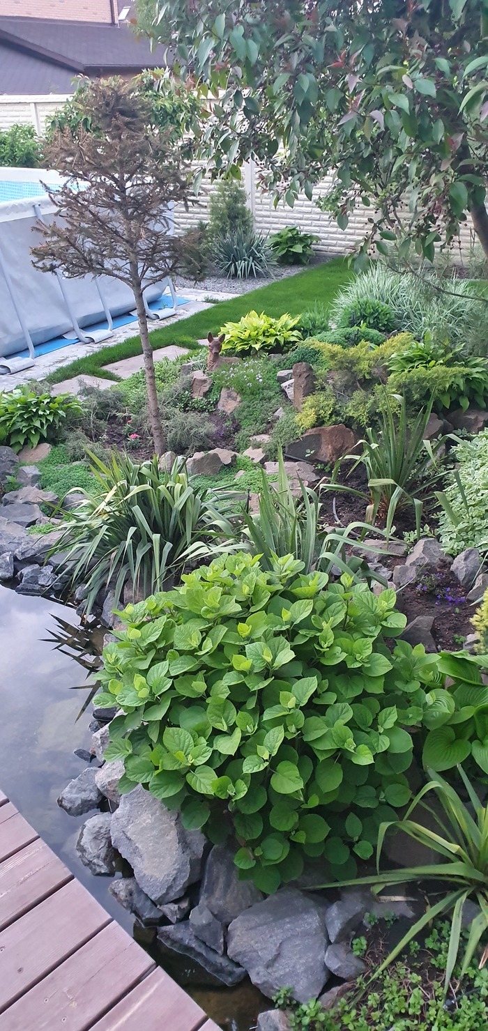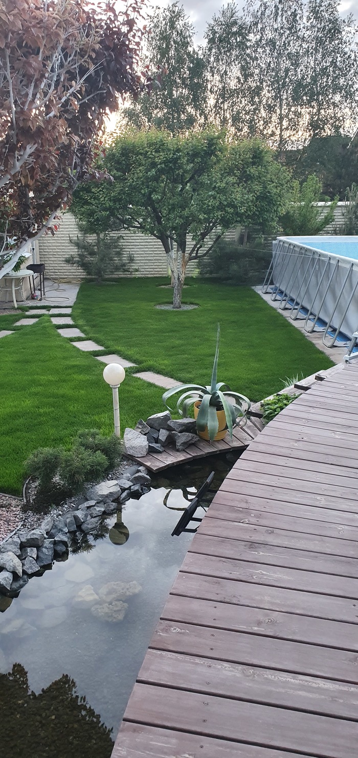 Купили с мужем дом давно. Знали, что огорода не будет точно. Первые несколько лет муж пытался то помидорчики посадить то огурчики, ну так, для души, чтобы доказать, что - то он все-таки умеет. Эксперементировали много лет: то горки , то газон, что то не получалось, много растений в землю "закопано" ( не прижились ). И вот по прошествии многих лет, получилось то, о чём даже не мечтали. Огородничать не любим, а вот ландшафтом увлеклись. Всё облагородили, бассейн каркасный поставили, пруд вырыли, террасу летнюю сделали-друзья и дети на шашлычок каждые выходные приезжают и зимой, и летом. Сейчас внуку батут купили нужно, чтобы ребёнок развивался физически. А помидорчики с картошечкой мы и на рынке купим. И да, дети мои не страдают, а наоборот радуются, что мы такие современные и долбим их с огородом.