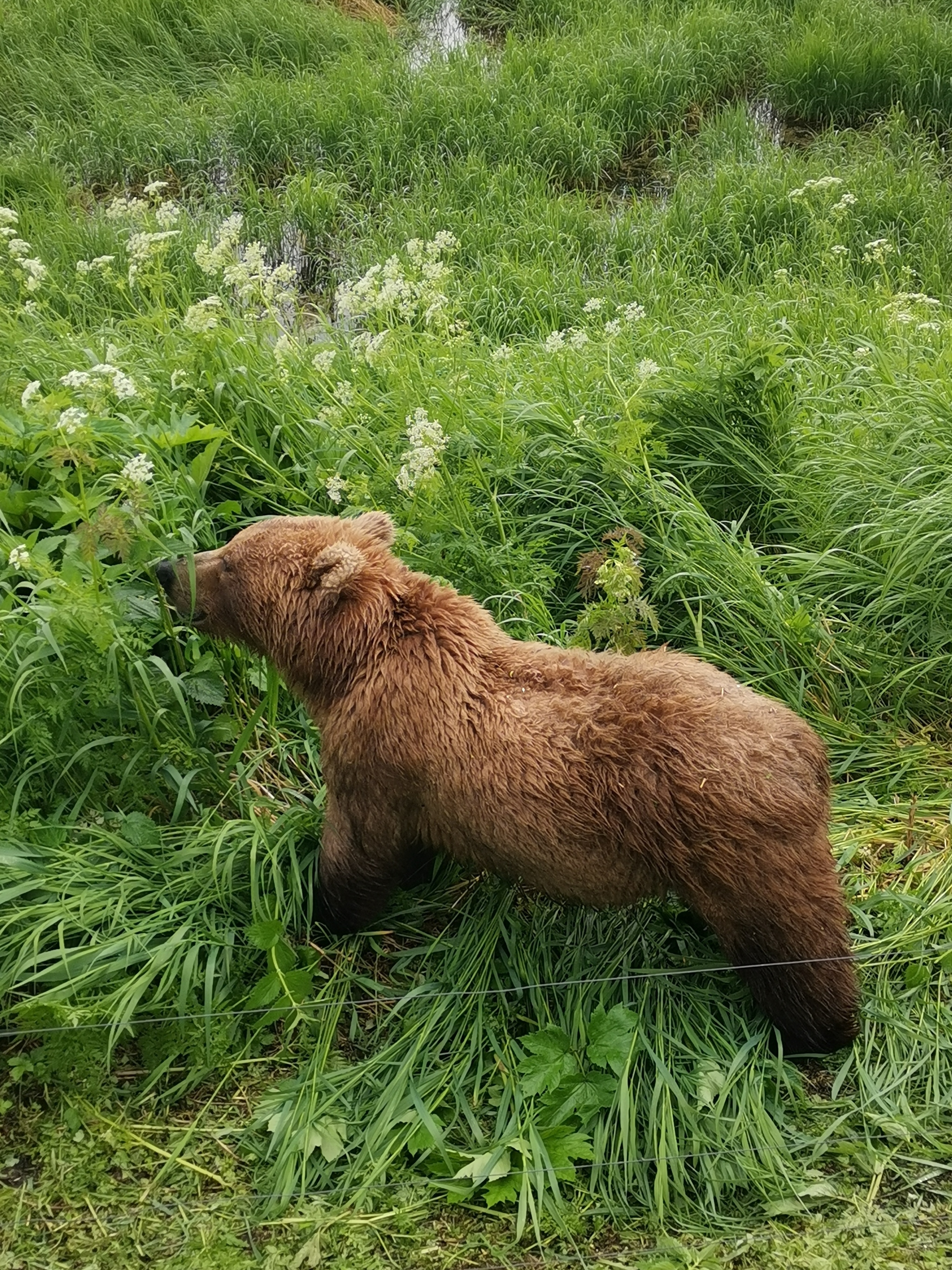 У нас там Матрёна с 3 медвежатами всегда вокруг ходила. Круглосуточно. Это ее территория. В принципе, они привыкли к людям и сотрудникам уже, но опять же туристы некоторые ведут себя не совсем адекватно.