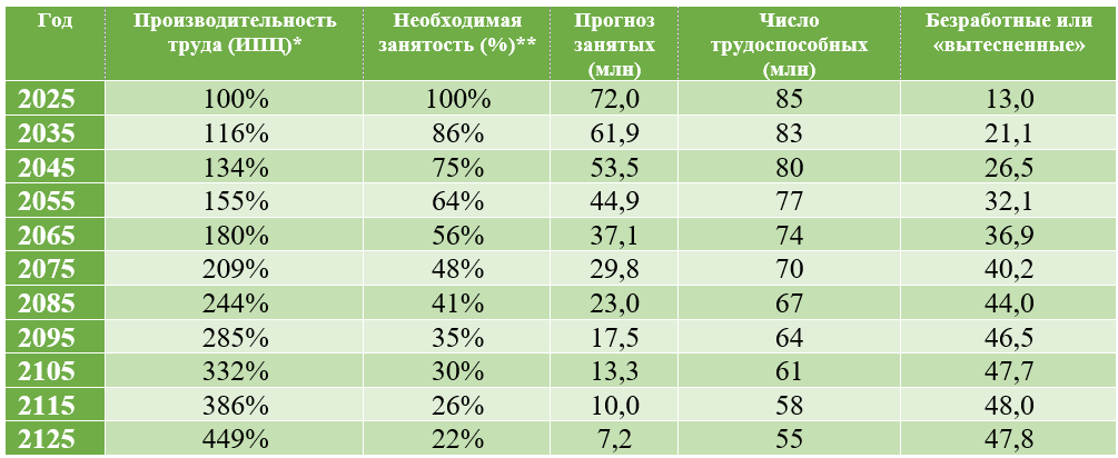 Число вытесненных: разница между трудоспособными и прогнозируемой занятостью.