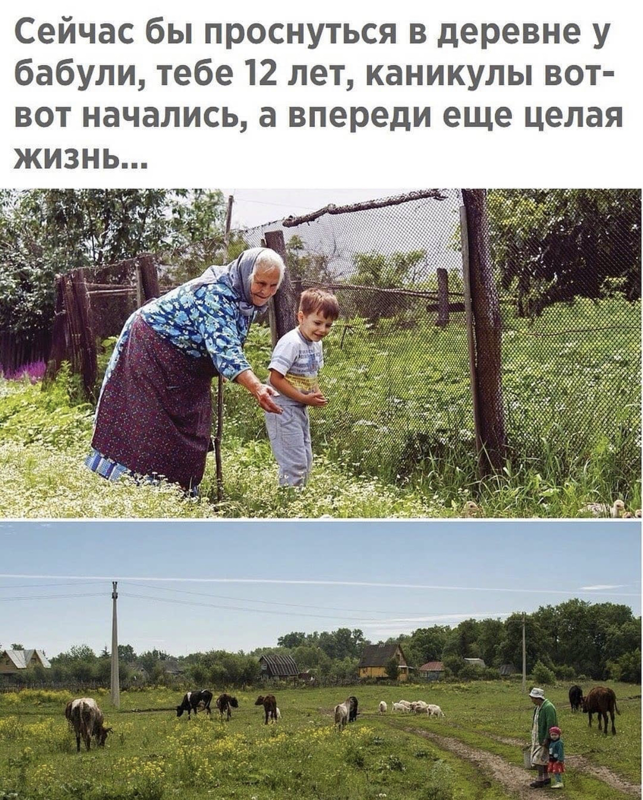 Мне 11 лет, деревня, родители развелись, я остался жить с бабушкой и дедушкой…лето, в школу ходить не нужно, у меня велосипед ,только только приделал к нему фару чтоб вечерами ездить, с утра за мной заезжает друг , мы берем удочки и едем на пруд)) наловили карасей, привозишь домой - бабушка их сразу потрошит , в муку и на сковородку, и ты думаешь что нет больше ничего на свете вкуснее…на выходных когда бабушка не работала (почтальон) , пекла булочки с корицей, друзья знали об этом и все собирались у меня))