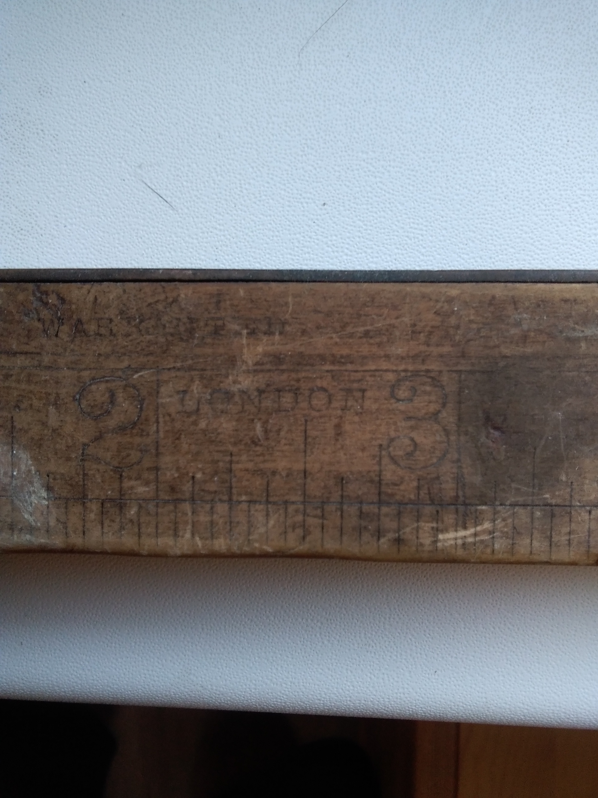Поддержите моё пиво. Лежит у меня вот такой уровень. Разметка дюймовая, прижимая планка для пузырьковой камеры из меди. Достался он мне от прадеда, который по профессии был столяр краснодеревщик. Сравнивал его со всякими модными стабилами, оказалось, что он даже не врет. Инструменту примерно век. Также на даче лежит небольшая пилка с клеймом London, рейсмус ручной и пара угольников.