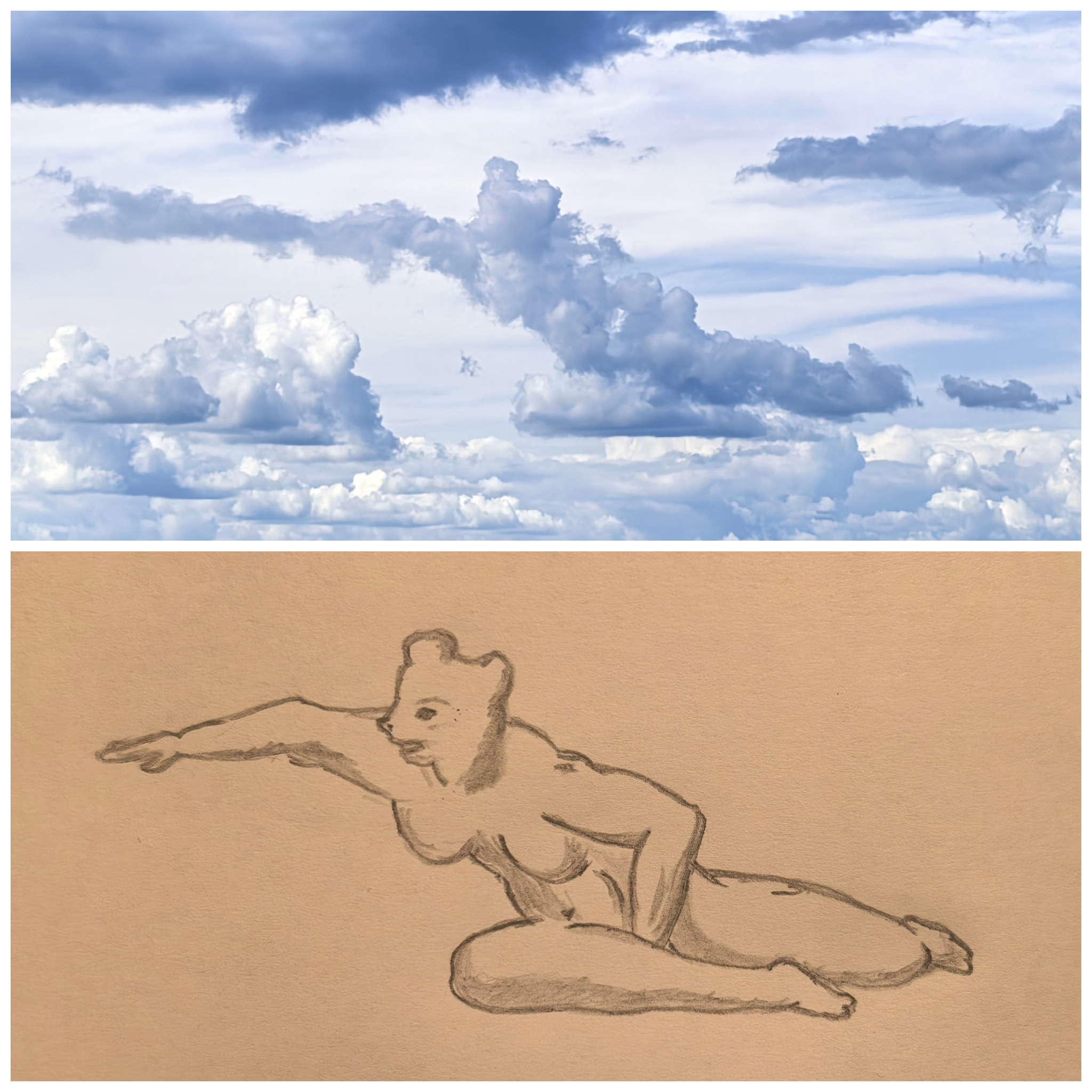 Парейдолия с облаками - это уж каждому знакомо. Недавно катался в Калязин и увидел над Волгой живописную гряду: