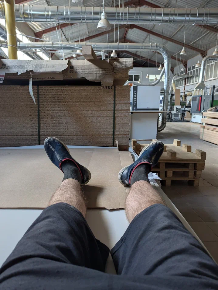 А еще как-то фрезеровался лист МДФ 2.800х2.070 на Rover A 2231 FT Nesting, а у него есть защита в виде стоек с лазерами, чтобы если кто войдет в зону обрабатывающего центра, то станок автоматически уйдет в аварийный режим и остановится. Лист фрезеровался долго и неожиданно между лазерами пролетела бабочка...