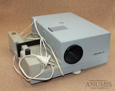 У меня никакого не было. Через фотоувеличитель смотрел диафильмы. Его горизонтально на штативе ставил и направлял на стену.