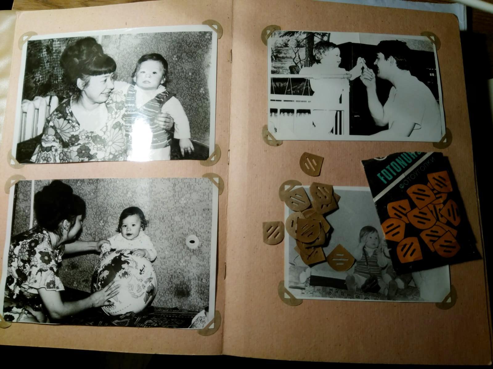В этих фото, много вещей. Мамин шиньон. Заглушки на розетках. Коврик на стене "Охотники на привале". Фотоаппарат ФЭД-3. Батина шапка "Пирожок"... Малой на фото, это я.))) Предположительно 76-77г.г. Родители мои. Альбом мой. Земной Шар мой. Соска на нижней правой фотке тоже моя.)))