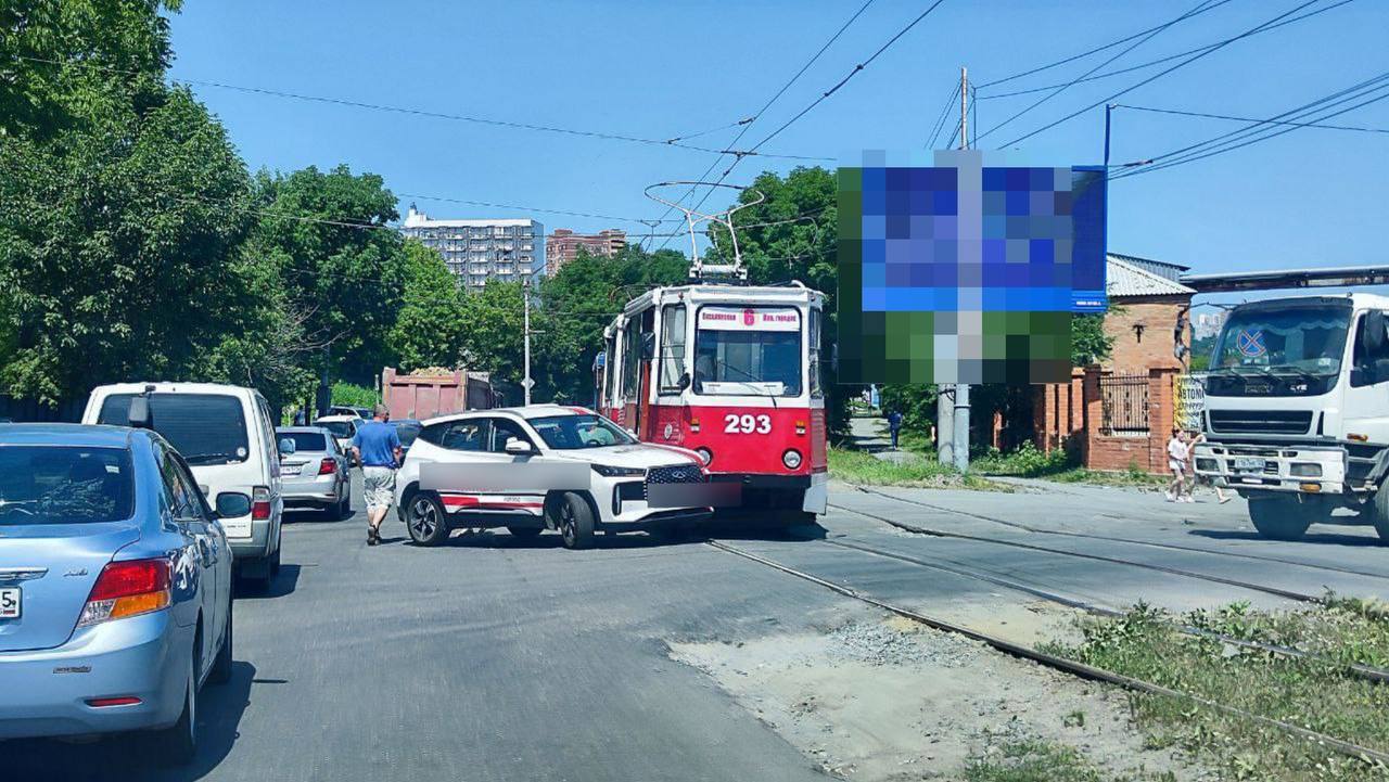На Борисенко в районе поворота к «Реми» столкнулись трамвай и учебный автомобиль Chery Tiggo. Из-за ДТП собрались заторы в обоих направлениях. Движение трамваев временно приостановлено.