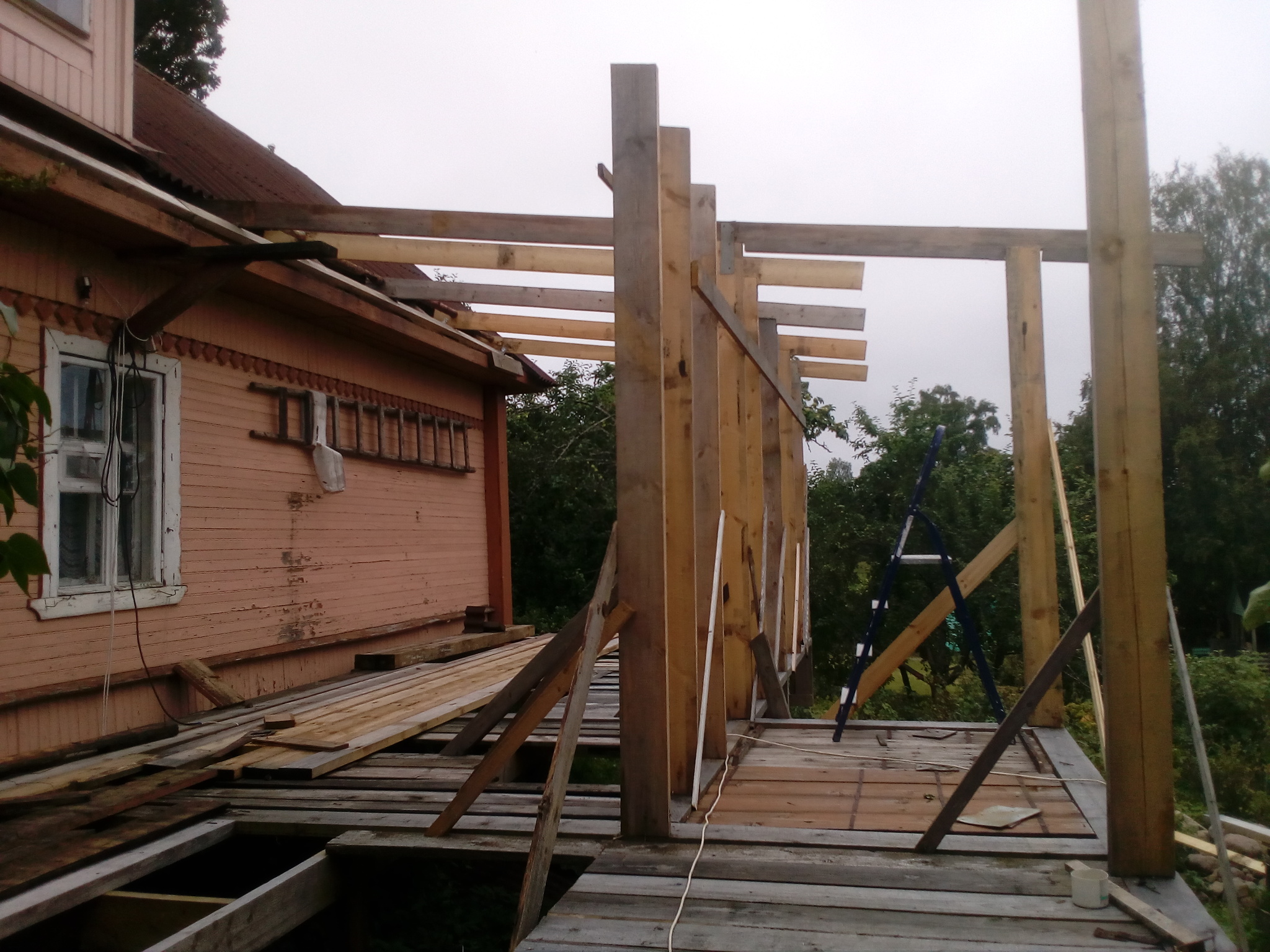В общем, за одно лето была построена вот такая пристройка. Отцу помогал я + был нанят за небольшие деньги местный умелец.