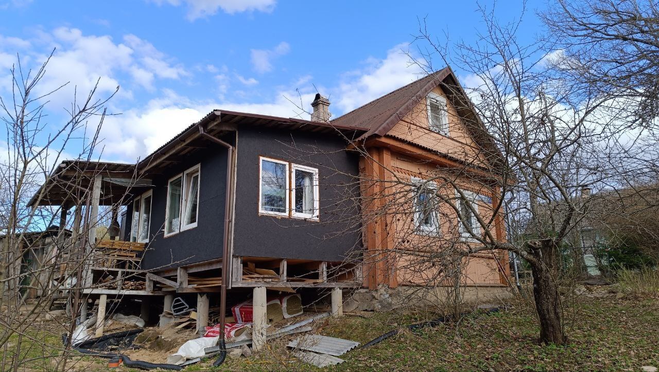 Время шло, менялись представления о комфорте, а дом потихоньку ветшал. Места всем не хватало, ездить хотелось не только летом, но и осенью/зимой. В какой-то момент мой отец решил, что ему пора переезжать с чердака вниз. Посему было принято революционное решение расширить дом, а также сделать нормальную кухню на первом этаже в теплой части дома.