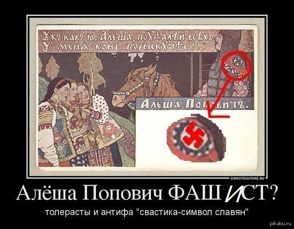 При этом что бы ты не говорил, что ты не утверждал один основной факт ты не можешь оспорить - свастические символы и свастики это именно те символы которые использую в современном мире националисты всех мастей. При этом они часто связаны с неоязычеством или маскируются под них. Именно от них все эти байку про исконно-посконный. Фашистам же надо объяснять почему славяне используют свастику.