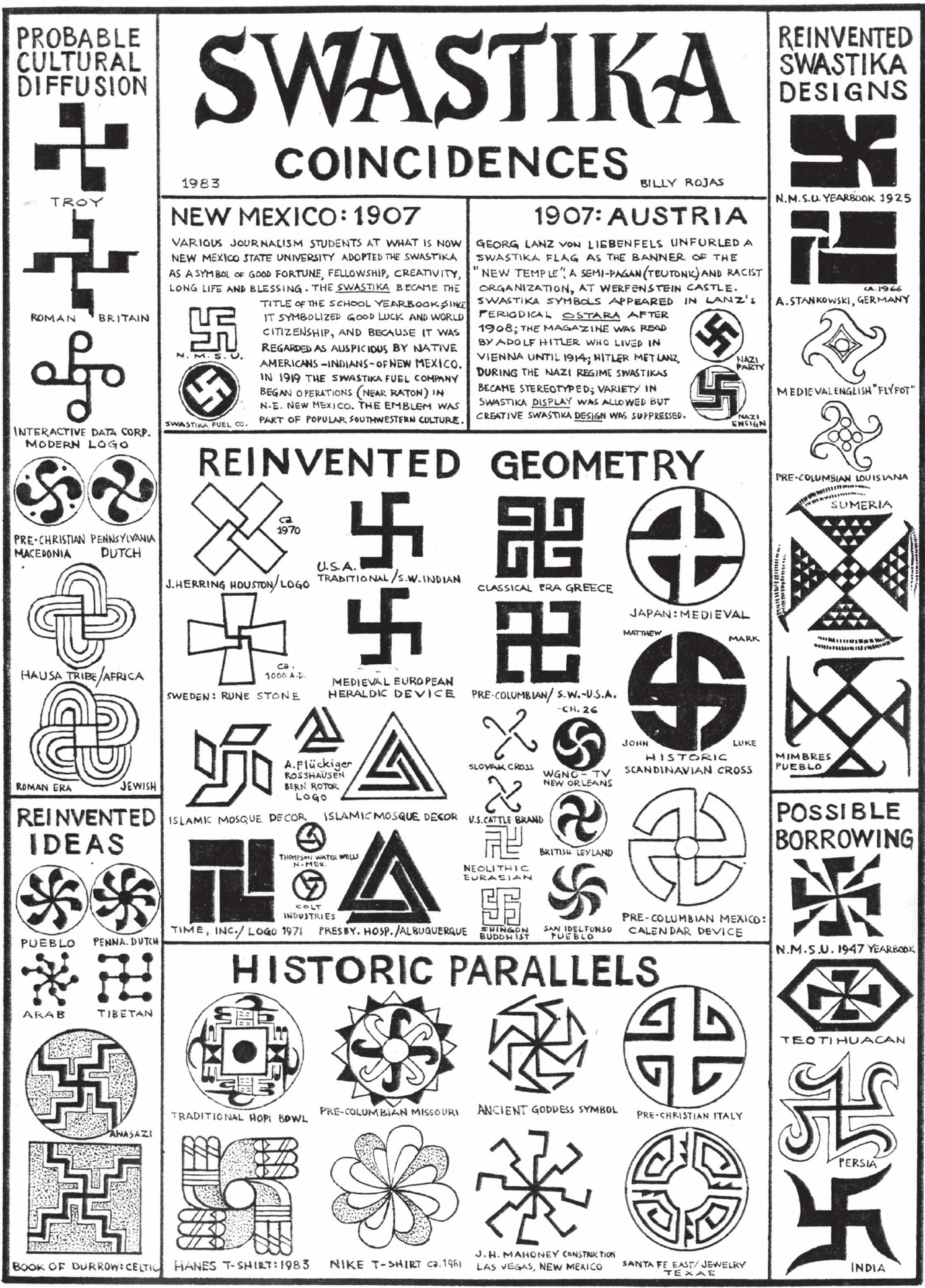 Факт 2 свастические символы имеют отношение к индоевропейцами и оттуда попали в культуры многих индоевропейских народов, в том числе и славян, причем у славян свастика никогда активно не использовалась, разве что в вышивке, уступив свое место настоящим солярным знакам славян - "громовому колесу" и подобным.