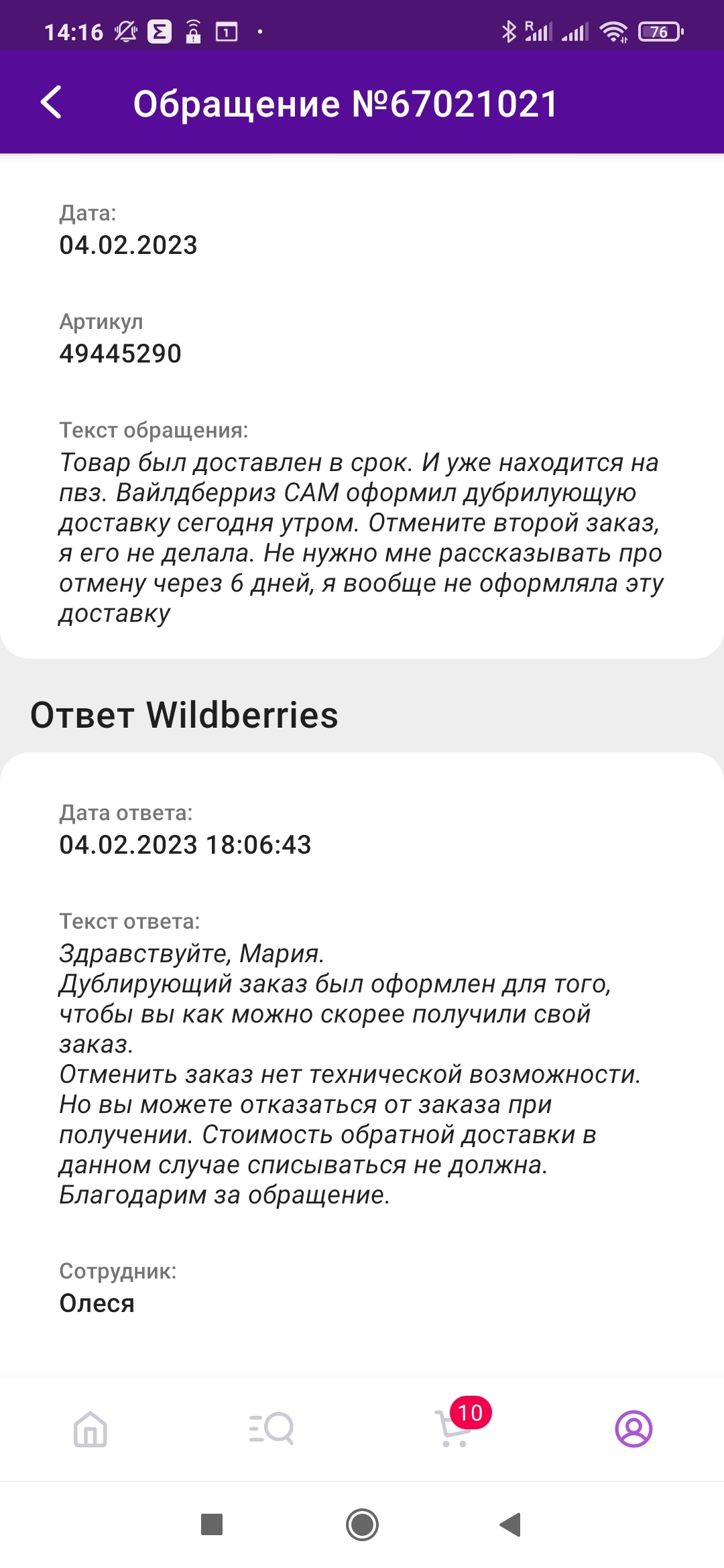 Я попыталась настоять, чтоб поддержка сама отменила заказ.