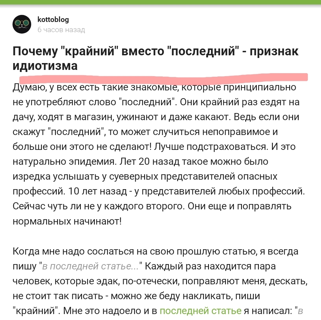 Ответ на пост «Почему "крайний" вместо "последний" - признак идиотизма»2