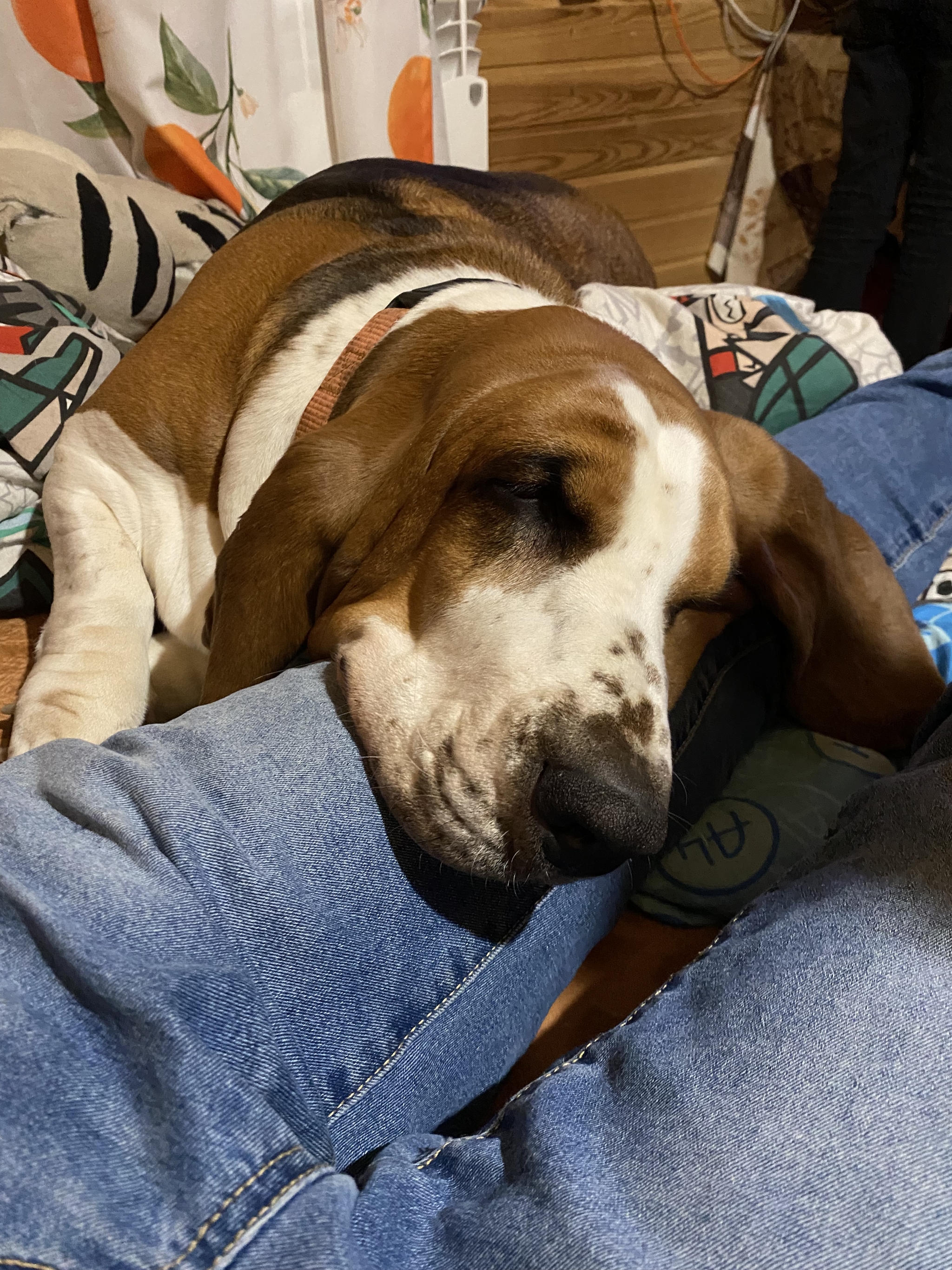 Самая обнимательная собака из всех, что я когда-нибудь видел и чесал. Может спать 25 часов в сутки, в любой позе и в любом месте