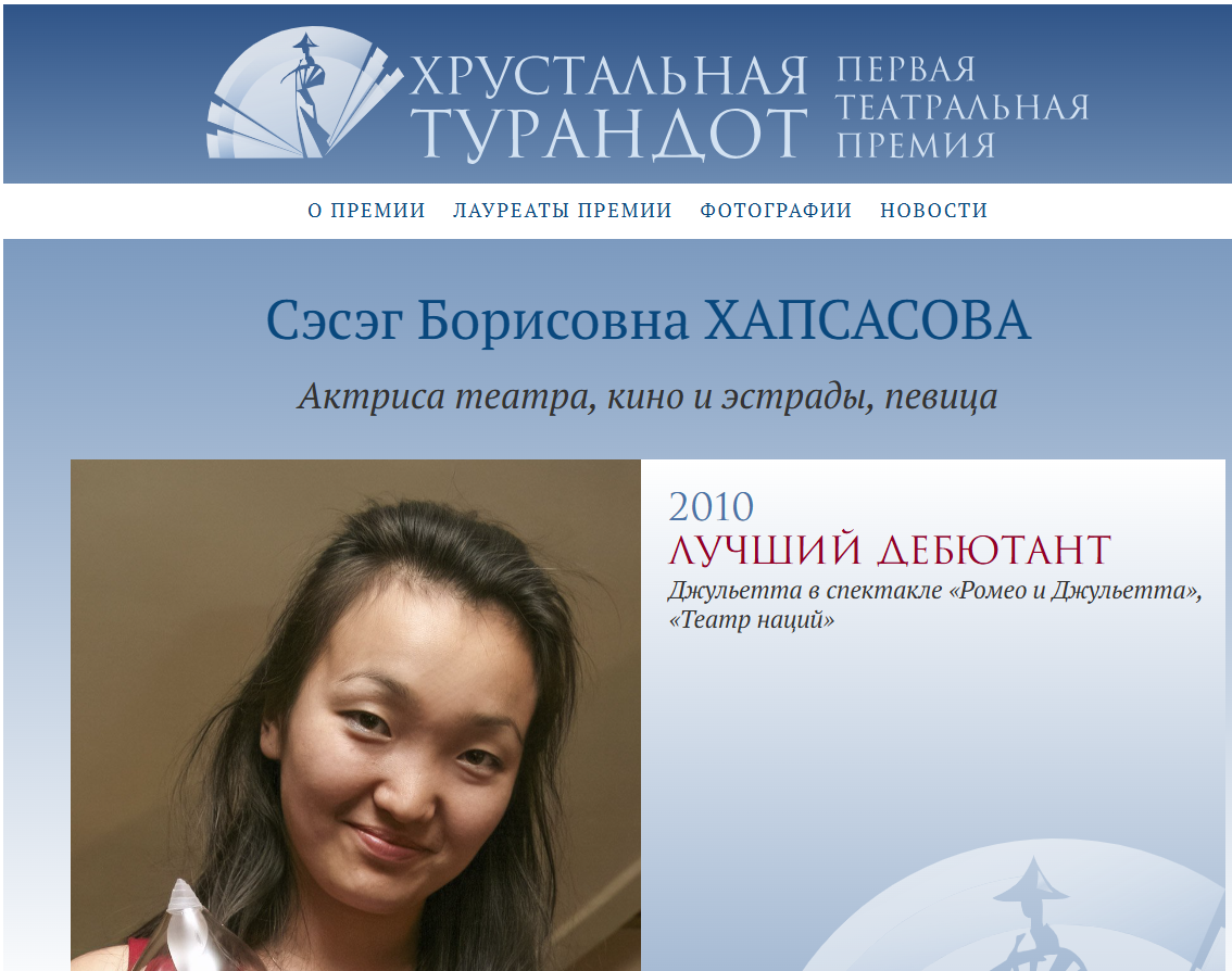 На фотографии выше - русская (этнически монгольская) актриса, получившая за роль Джульетты "Хрустальную Турандот":