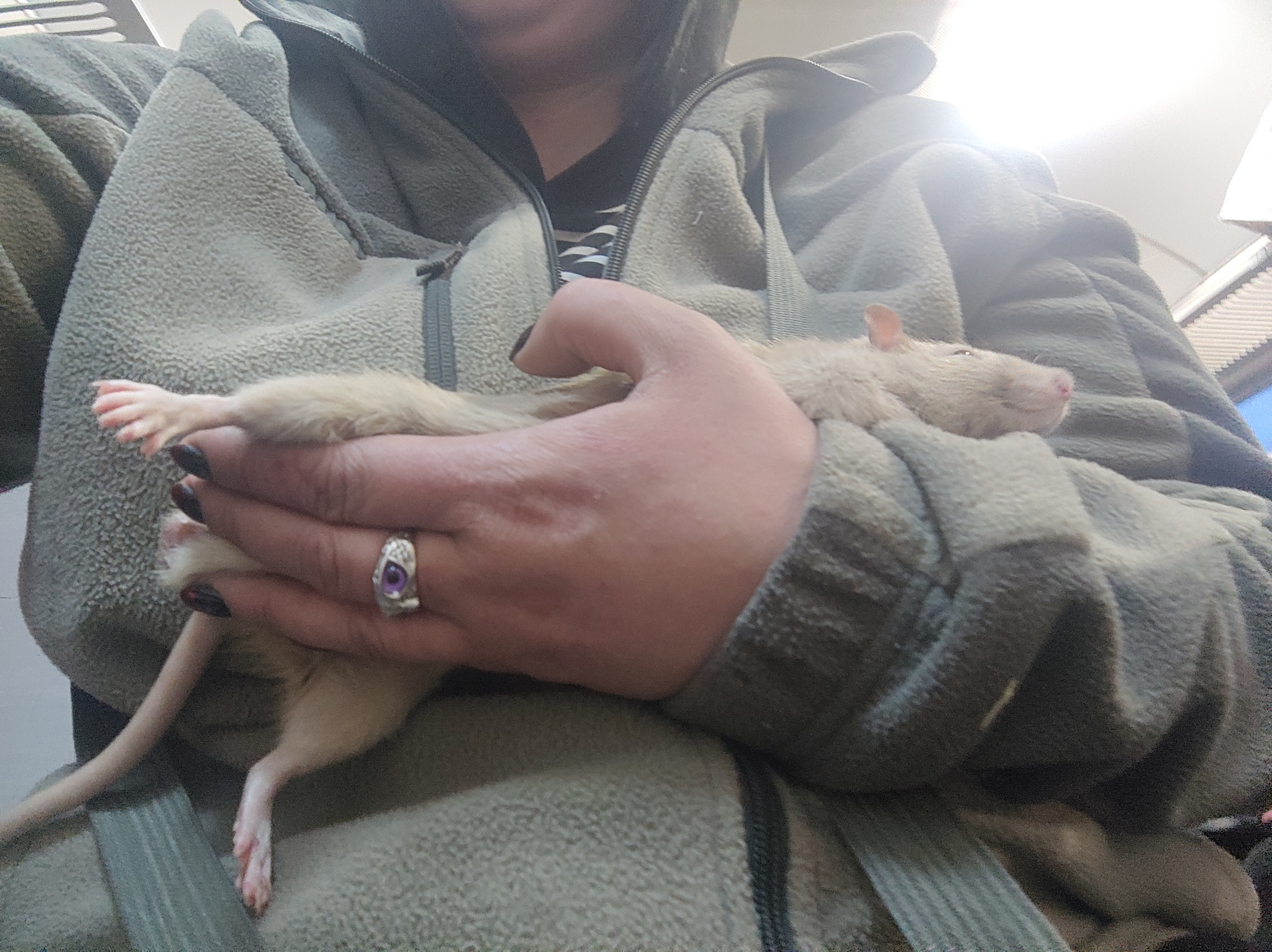 Можно взять его подмышку и он безропотно там болтается любое количество времени.