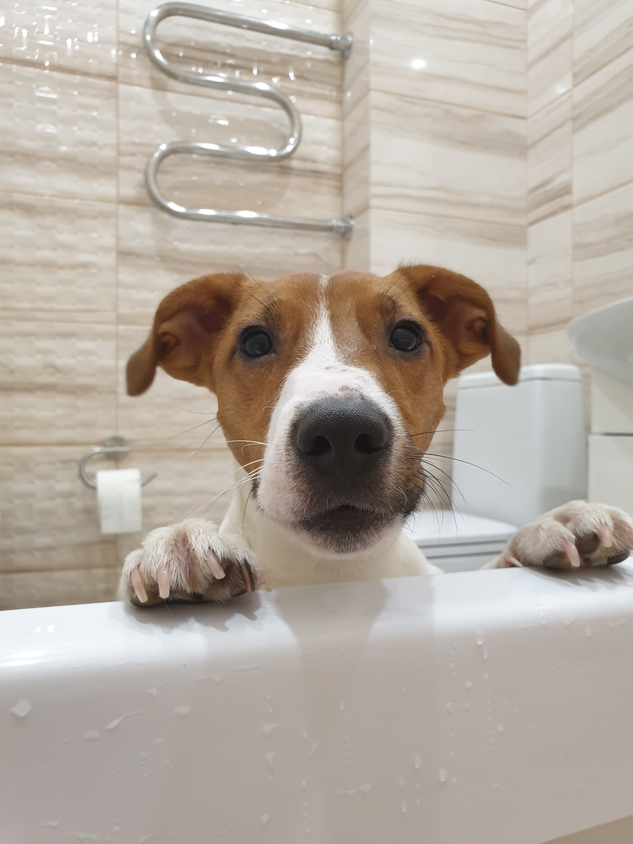 Кстати, довольно нешумная собака для города и квартиры. Хотя, говорят, это не со всеми собаками так. Наш, мне кажется, понимает, что не нужно шуметь, поэтому даже когда ему приспичит что-то сказать котам под окнами, он делает это не громко и деликатно: