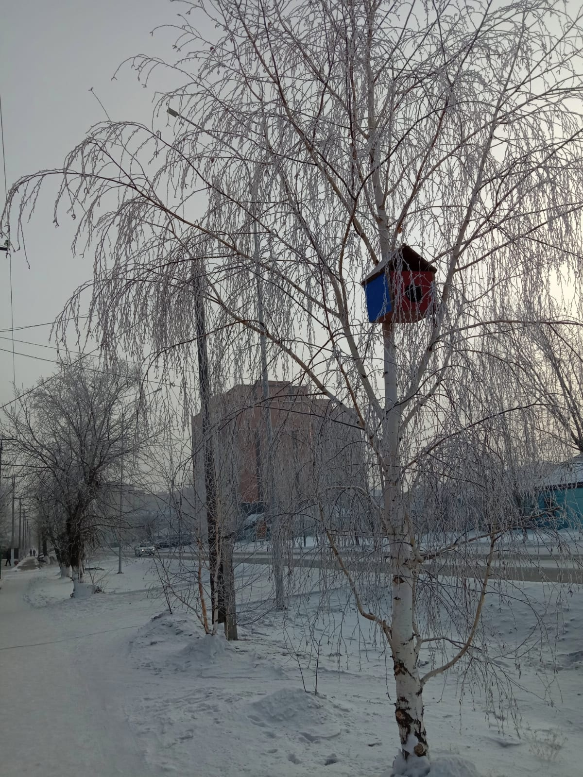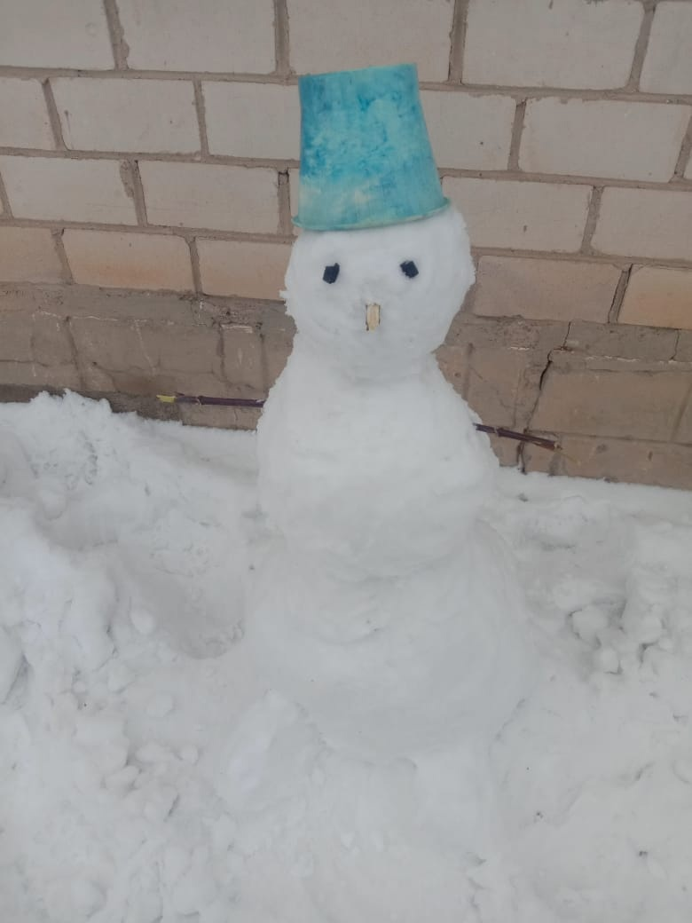 Снеговичок. Снег плохо лепился, поэтому лепил голыми руками при довольно ощутимом морозце. Вот и получился снеговик маленьким.