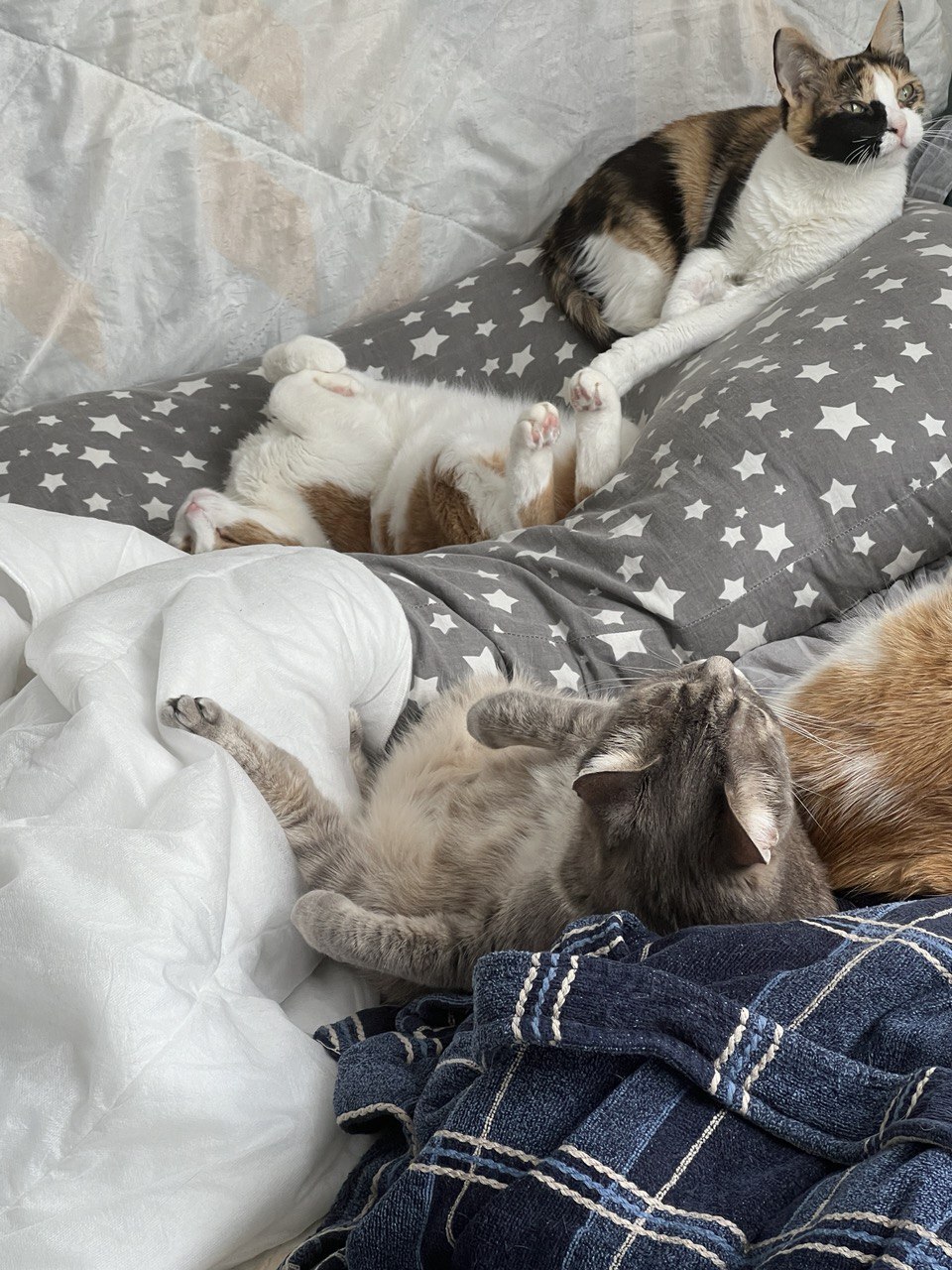 Пост шутка. Все кошки на фото мои. Все живы. Все хорошо живут, жрут корм в 2 раза дороже говядины по кг. В ветеринарной планово бывают часто, скидка на опт есть))))