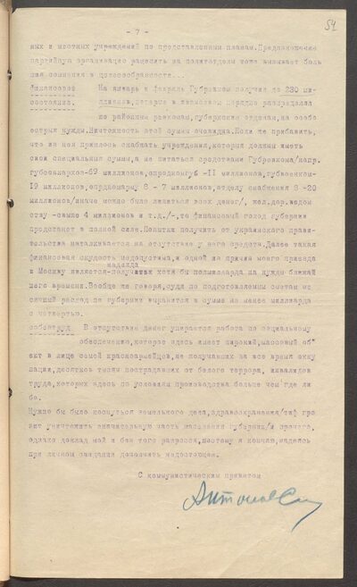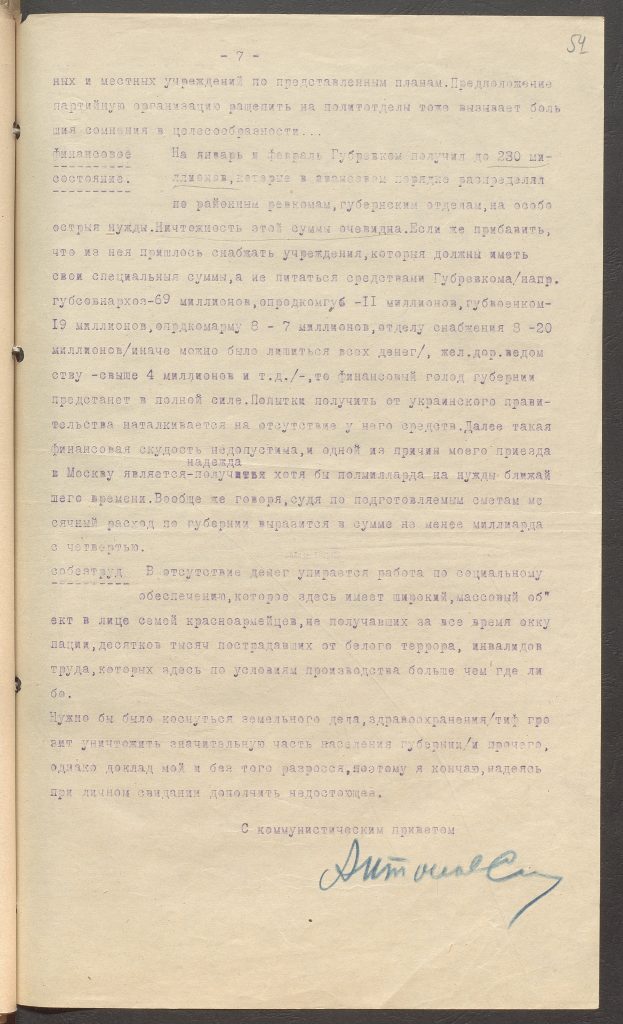 Секретарь РК ВКП(б) т. Горнаков, информируя обком о состоянии района в связи со снятием с пайка, в записке на имя Бернатовича указывает о невозможности дальнейшего существования и ходатайствует о снятии его с работы в районе, заявляя: «Будь друг, подтолкни это дело снятия с работы, я семью уже отправил сегодня к тестю, абсолютно стало жрать нечего, дети все заболели, представь — нет хлеба, нет керосина, даже соли нет в районе, так дальше жить нельзя и работать нет никакой возможности».