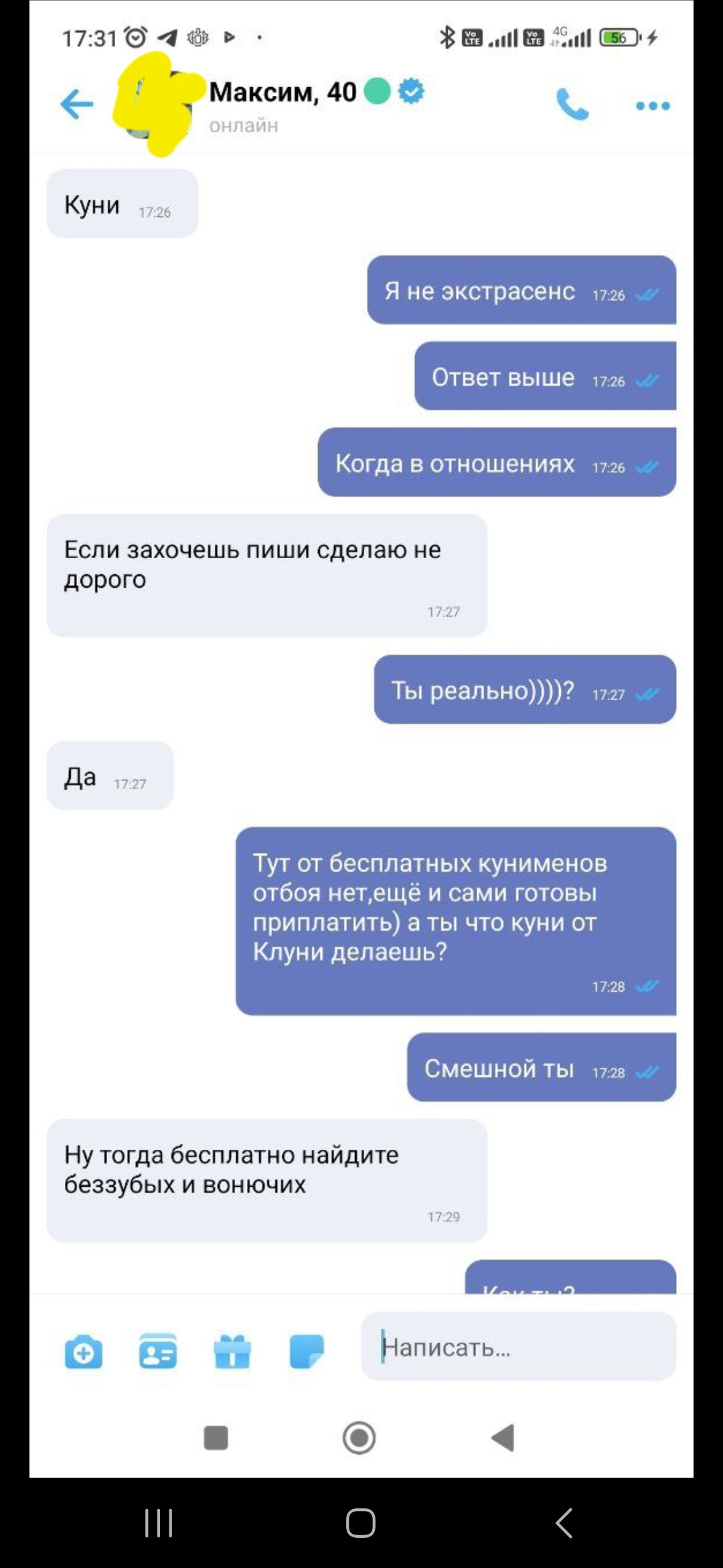 Кто-то куни предлагает, кто ас, кто туфли продать, кто в любовницы сходить, тут мжм. Все что душа пожелает.