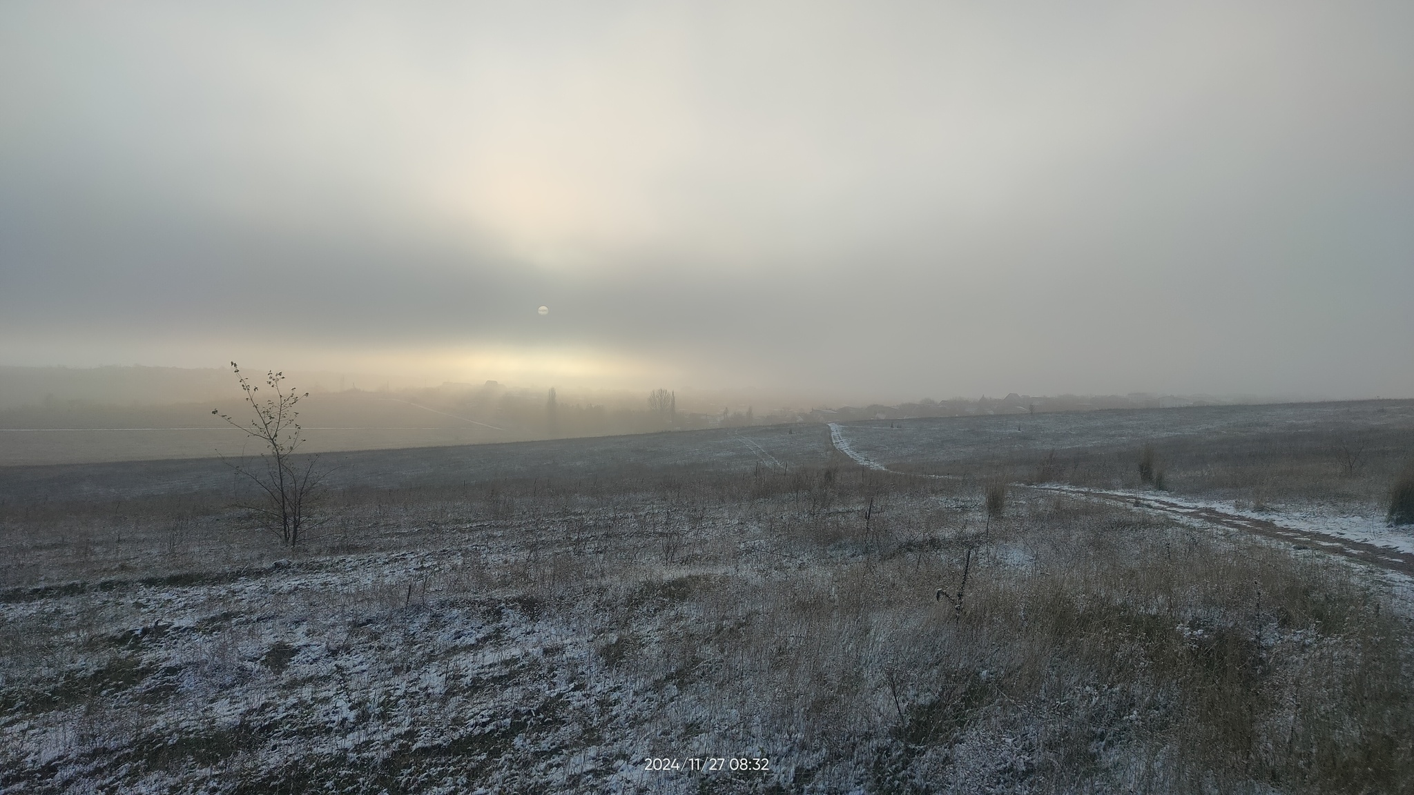Тоже вот сегодня сфоткал на телефон рассвет, и да вот тот мутный кружок это солнце ))