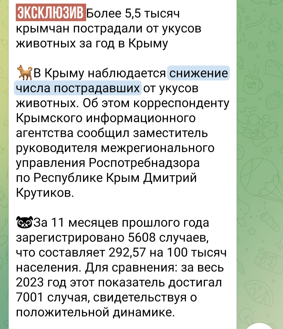 🐕 За прошедшую неделю от укусов животных на территории Республики Крым пострадал 81 человек. Об этом сообщили в пресс-службе Государственного комитета ветеринарии РК.