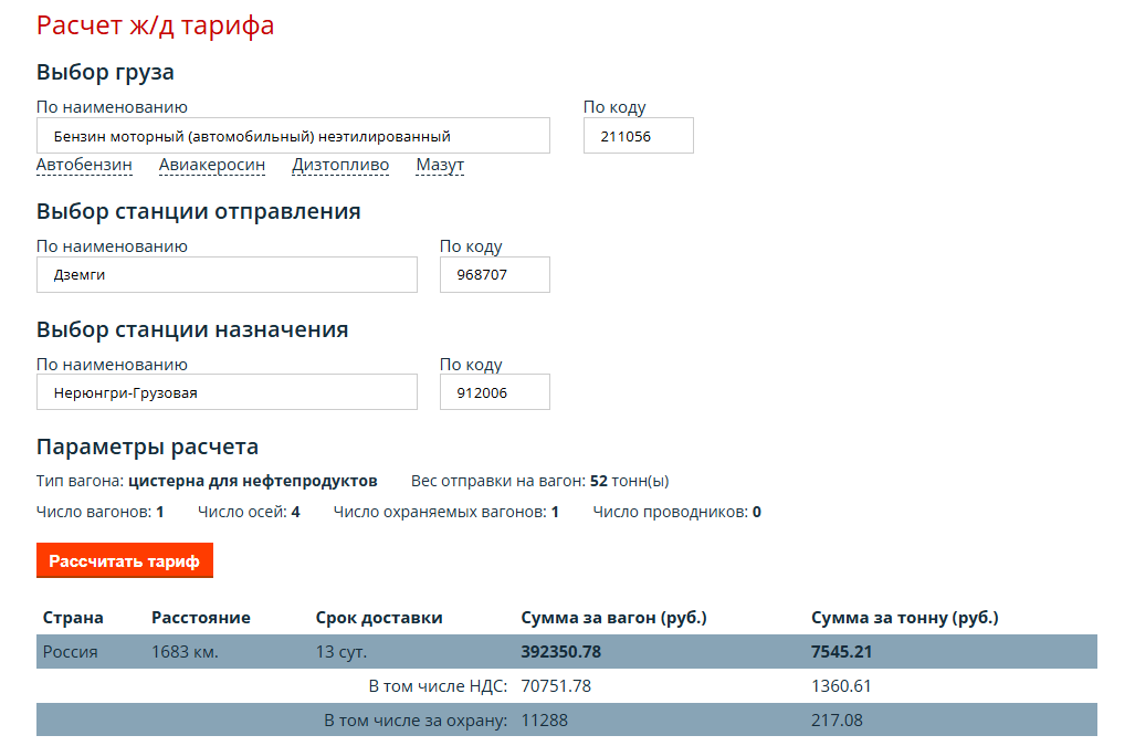 Ставка ж/д перевозки до ст Нерюнгри-Грузовая - 7545 руб/тонна