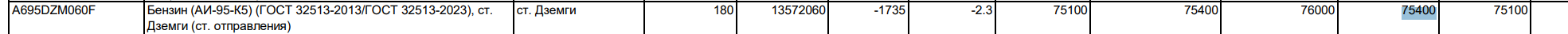 Цена на бирже АИ 95 К5 ЕВРО - 75400 руб/тонна
