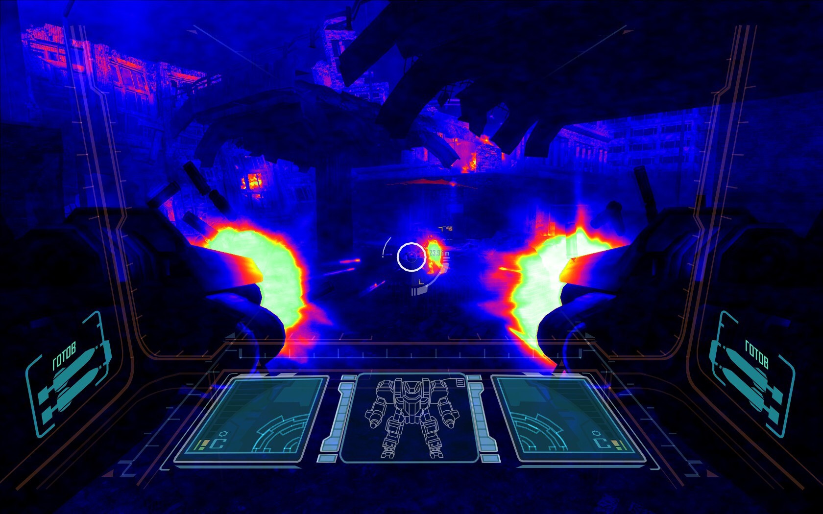(F.E.A.R. 2: Project Origin. Да, тут есть эпичная поездка на боевом роботе)