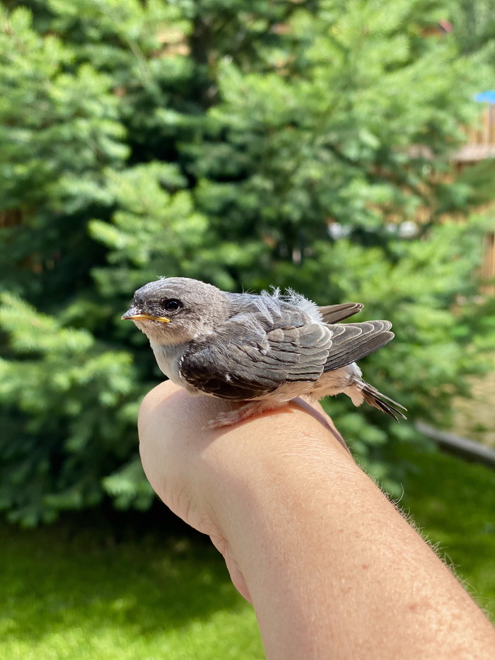 Много усилий было приложено в поисках дома для Бориски. Наконец мы нашли девушку, у которой на тот момент жило уже три ласточки, но все они были инвалидами (собственно потому они и жили у нее после пристроя). До отъезда оставались сутки. Бориса к тому моменту мы в контейнере в сетке ежедневно выносили на тенистое крыльцо – подышать, послушать своих собратьев (напомню, на доме осталось 10 гнезд).