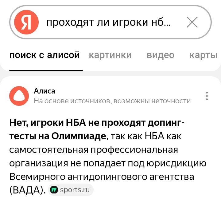 Посмотрите на Леброна в 40 лет. Человек не способен в таком возрасте выдавать такие результаты, он с самого детства на фарме. Стеф, Дюрант, кто там еще из стариков остался, которые выдают космические результаты? Но повторюсь - НБА самостоятельная организация и она сверху кладёт на все чужие мнения по допинг тесту