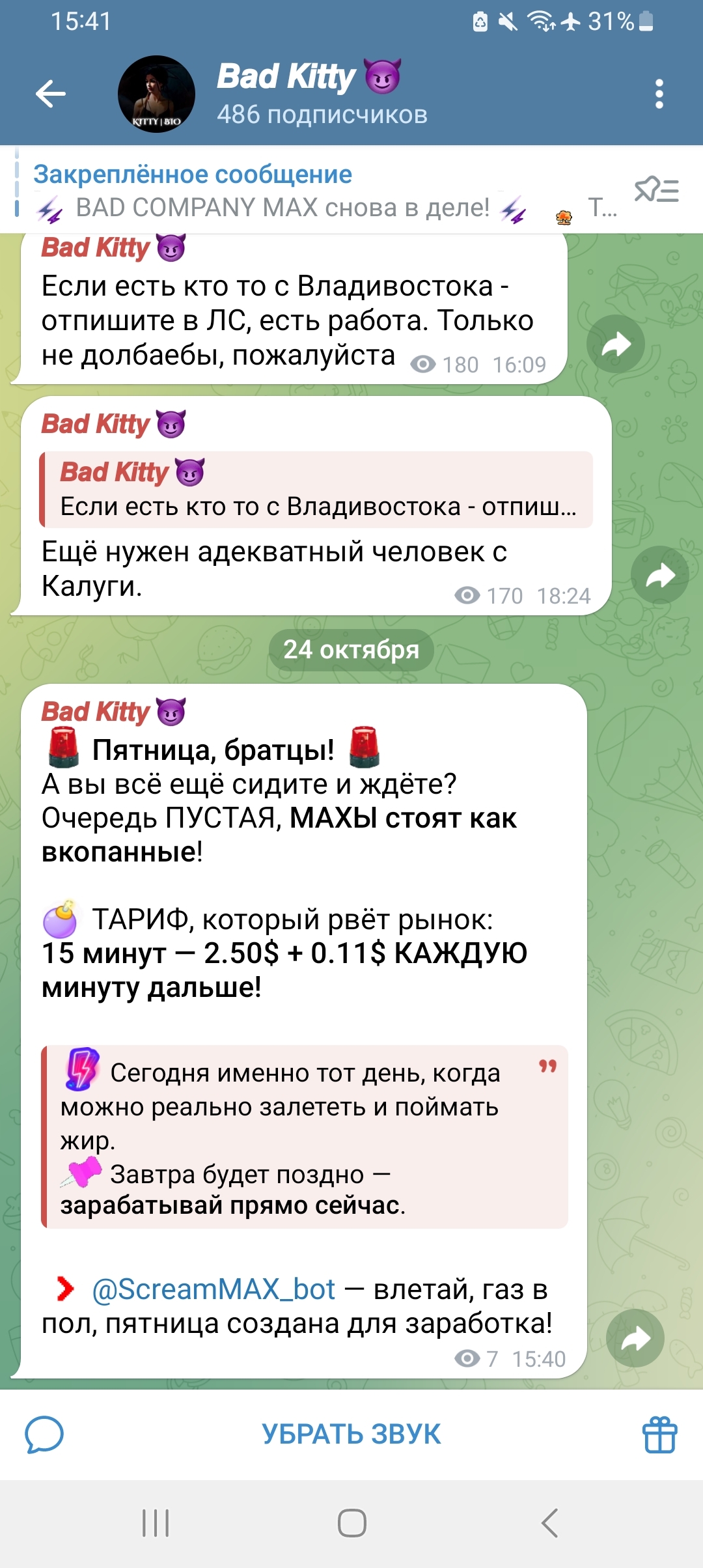UPD: Kitty, чей канал собственно на скрине, одна из ТОП-дроповодов по закупке аккаунтов и номеров для скама, поставщик КЦ... работает из Казахстана, полностью сдеанонена, есть все данные её, в сети дохуя фото и видео с ней, причём даже откровенного содержания... но ни МВД ни ФСБ ничего не делают, им пох... она в дарке более 4-х лет... причастастна к 1000 эпизодам по СНГ... и отлично себя чувствует, зарабатывает бабло, счастливая мама на удаленке 😁