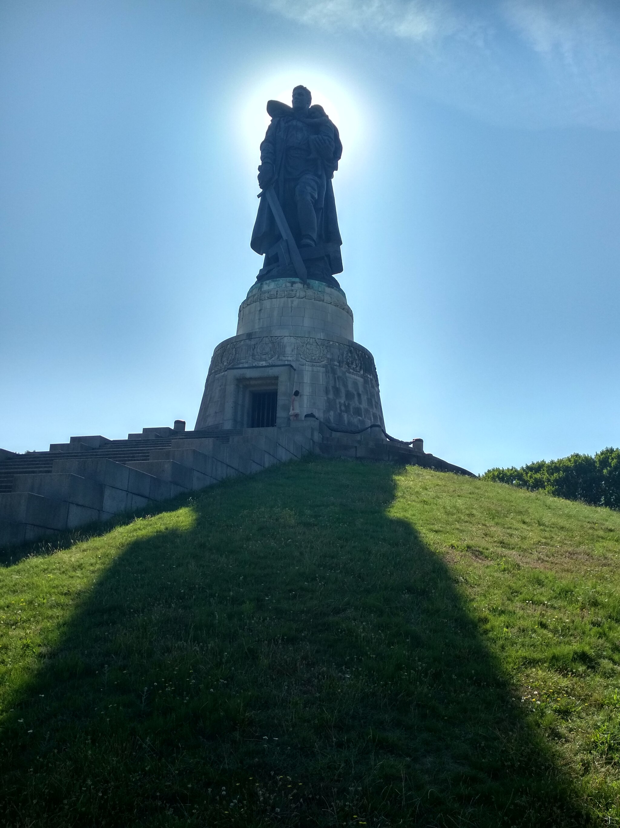 Может для кого то будет открытием. Но Родина - Мать это один из трёх памятников цикла о войне. Один на Урале находится, там меч передают. Второй Родина Мать с поднятым мечом. А третий это памятник Воину освободителю с опущенным мечом. В Берлине, Трептов парк. Если пройти от основного памятника солдату. То напротив него будет стоять преклонив колено женщина, символизирующая Родину Мать, благодарную своим сынам.