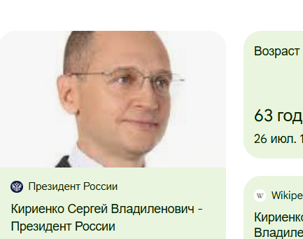 Кириенко сейчас очень даже при делах так то. Очень важный перец при Путине, тащит очень ответственные направления.