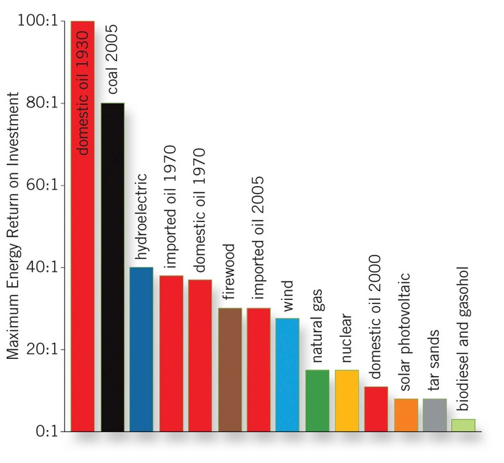 Первичных источников с высоким EROI близким к 100 уже нет, они закончились ещё в начале-середине прошлого века.