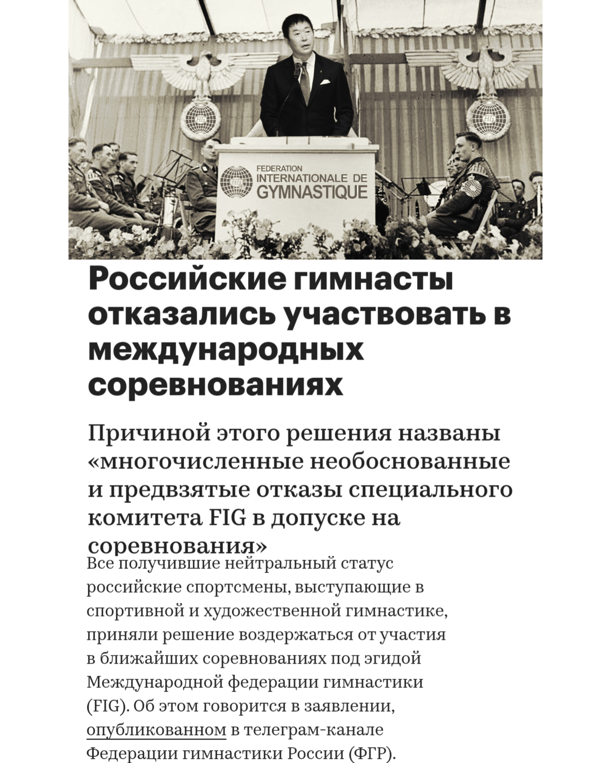 Ответ на пост «Российские гимнасты отказались от участия в международных турнирах»1